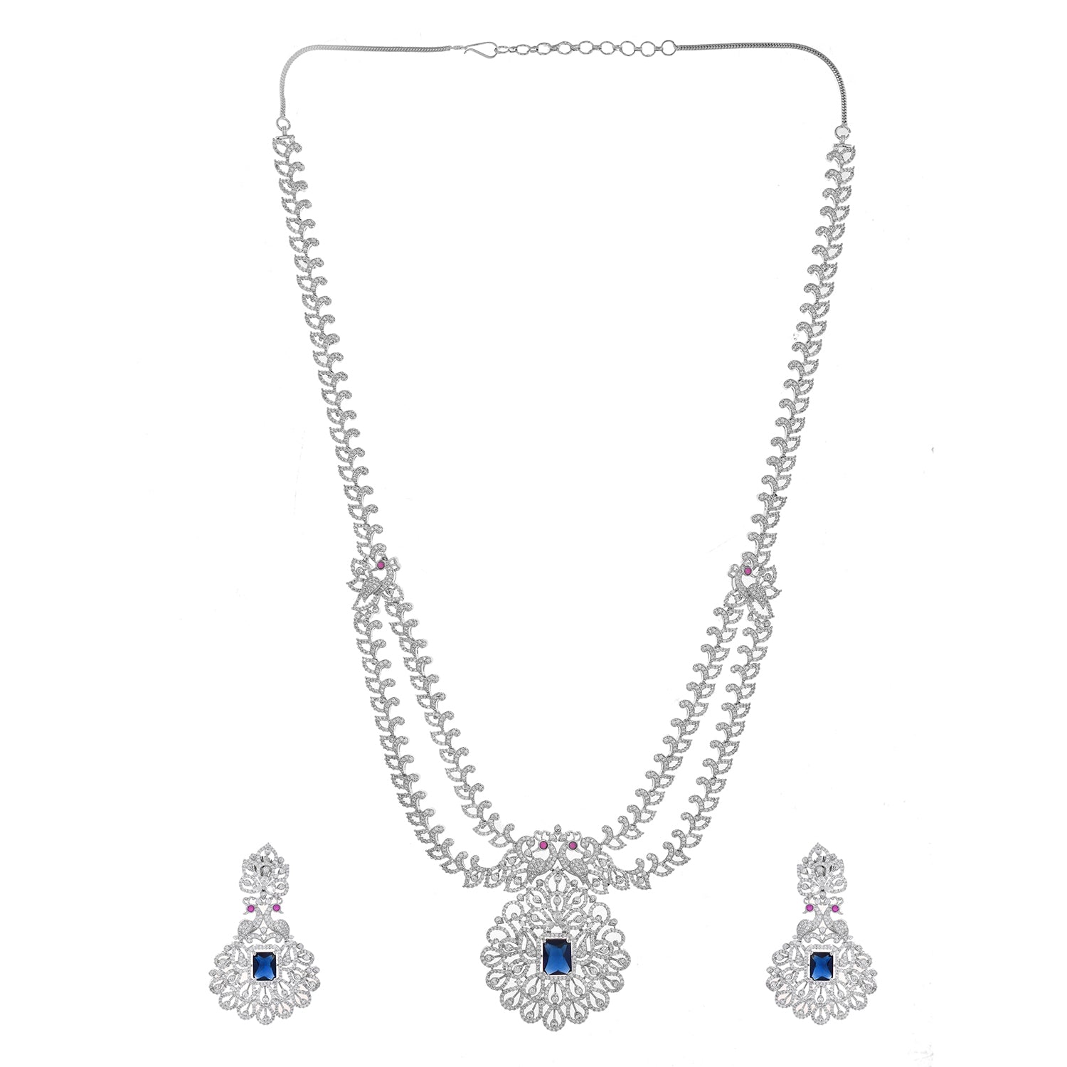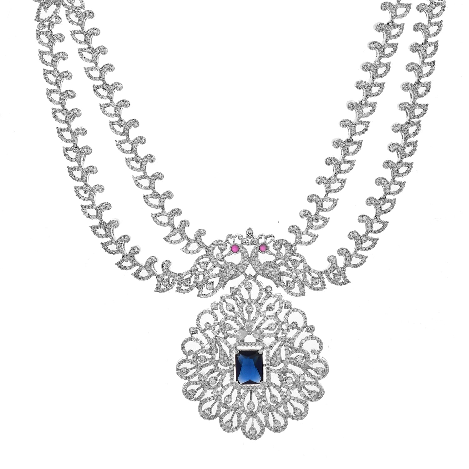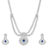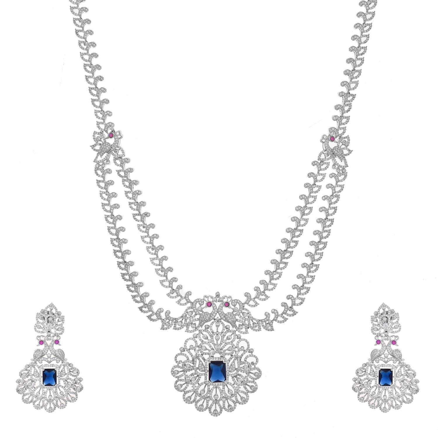Sparkling Opulance Saphhire Plume American Diamond Necklace Set