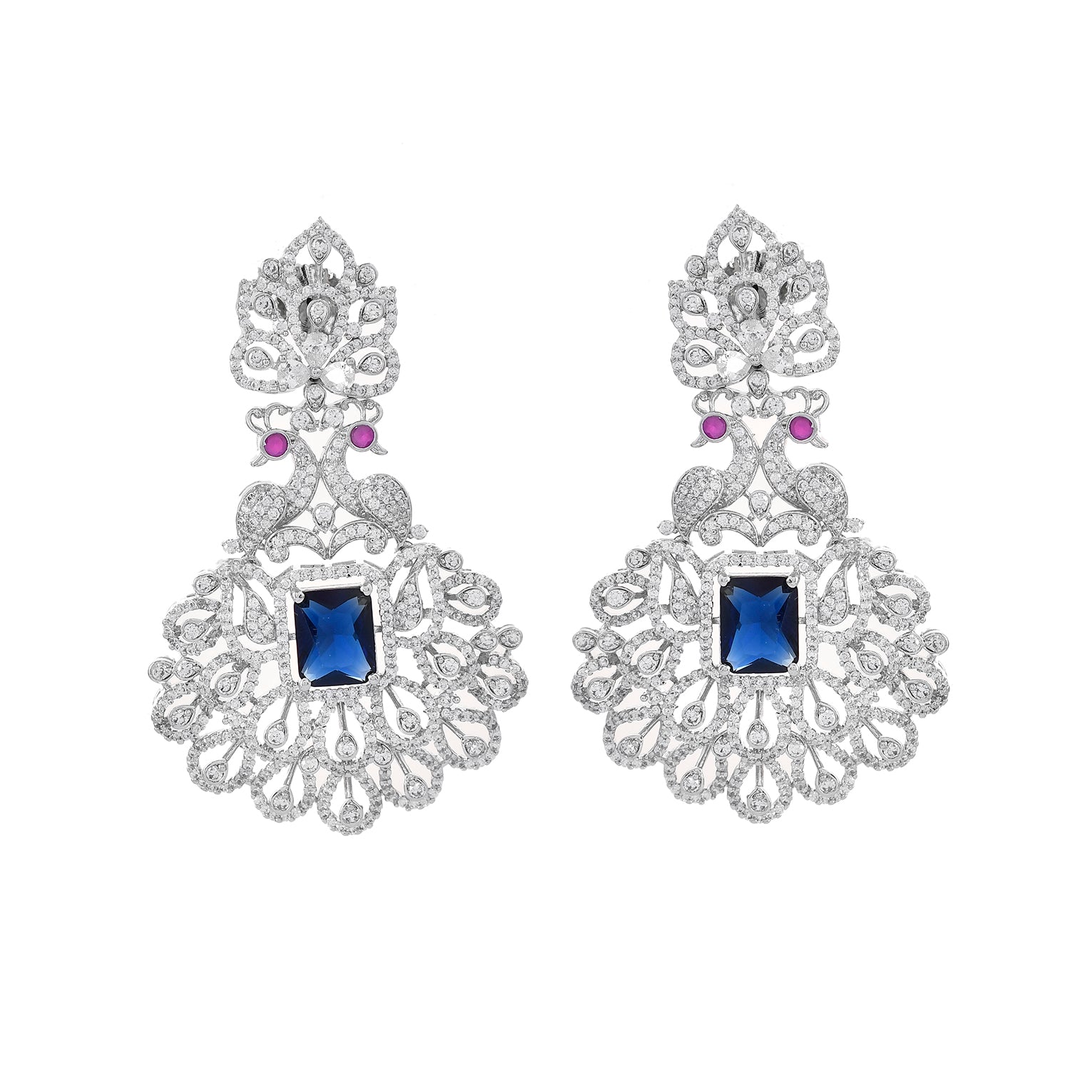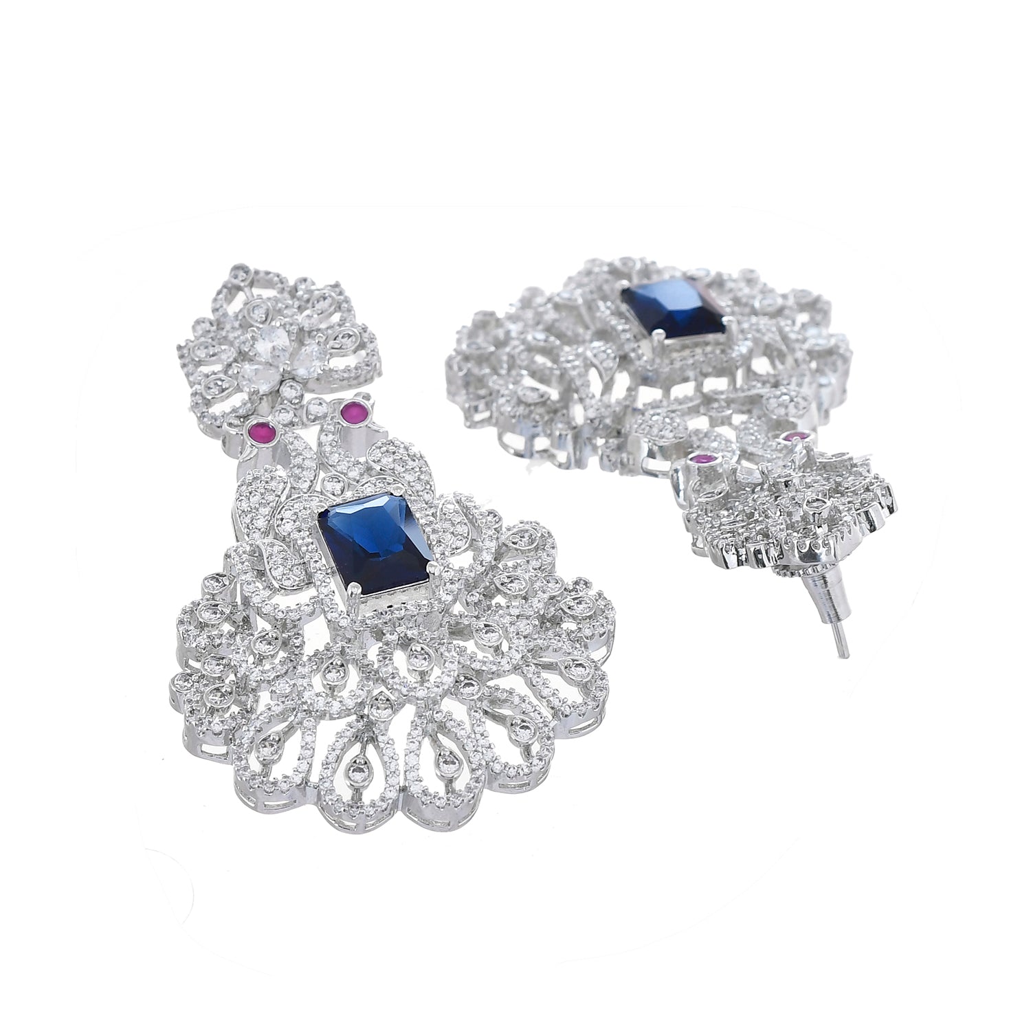 Sparkling Elegance Royal Sapphire American Diamond Dangler Earrings
