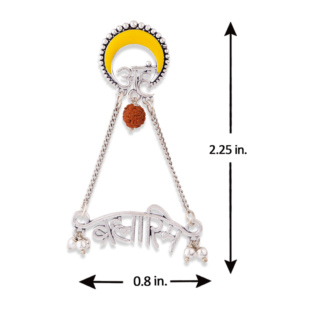 Adorned with Rudraksha beads and featuring a “Moksh” inscription, these enamelled earrings have been inspired by ancient Indian texts and Yogic principles. Made from brass and oxidised plated, the earrings can be paired with casual Indian looks.Weight (Gms): 5Size (LxW)(Inch):...