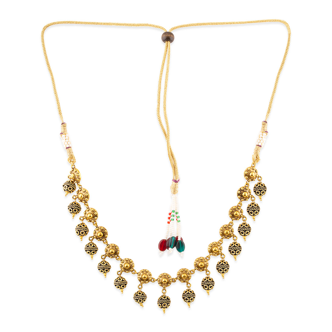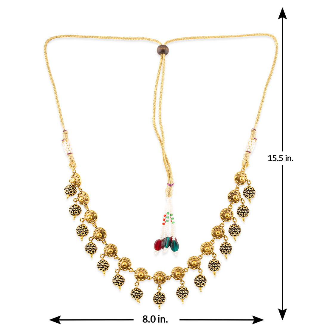 Adorn your beautiful personality with this exquisitely designed oxidized gold necklace in brass Pair it up with any casual, semi formal, or formal attire for that traditional yet contemporary look.