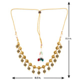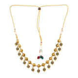 Adorn your beautiful personality with this exquisitely designed oxidized gold necklace in brass Pair it up with any casual, semi formal, or formal attire for that traditional yet contemporary look.Weight (Gms): 52Size (LxW)(Inch): 15.5*8Material: BrassPlating: Oxidized GoldColor: GoldSales Package: 1...