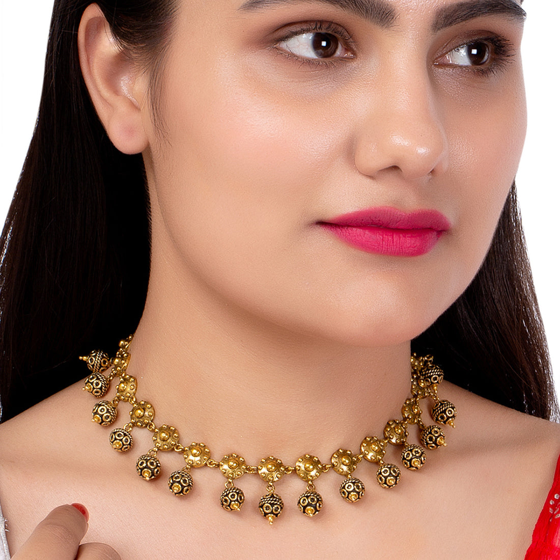 Rava Ball Ball Drop Choker Necklace