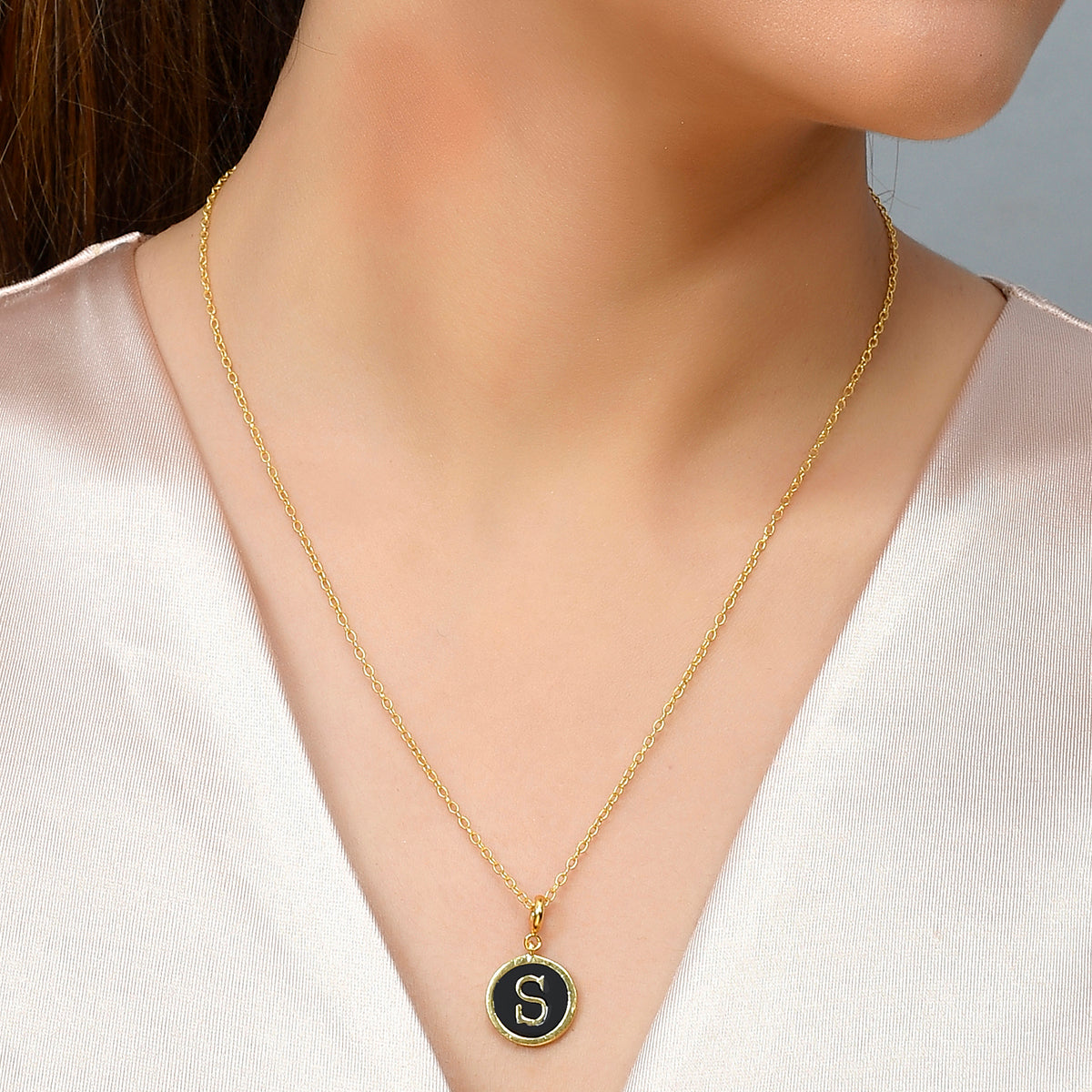 Fashioned from brass into a round shape, this black enamel alphabet S charm has been given a lovely yellow gold plating that adds to its allure. The charm will make the perfect V Day gift and can be added to...