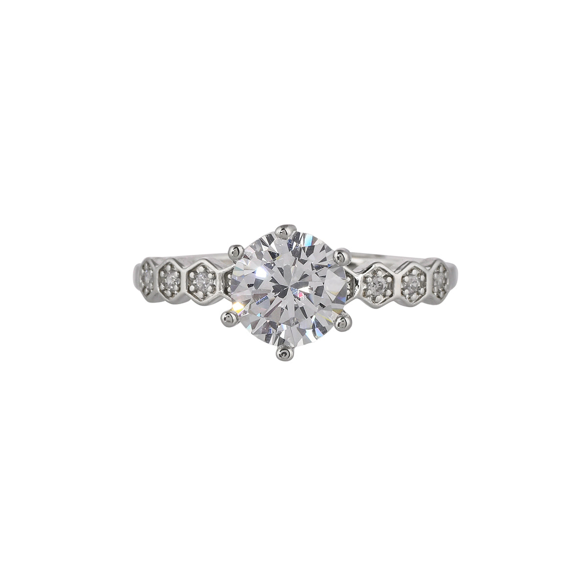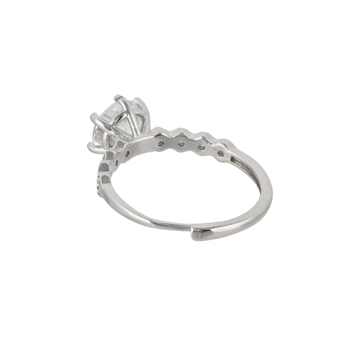 Classic silver plated band ring for women, fashioned out of brass. A single large zircon gemstone in a lovely emerald cut adorns this piece, which promises to be a comfortable wear at all times. Pair the ring with formal attire of all kinds.