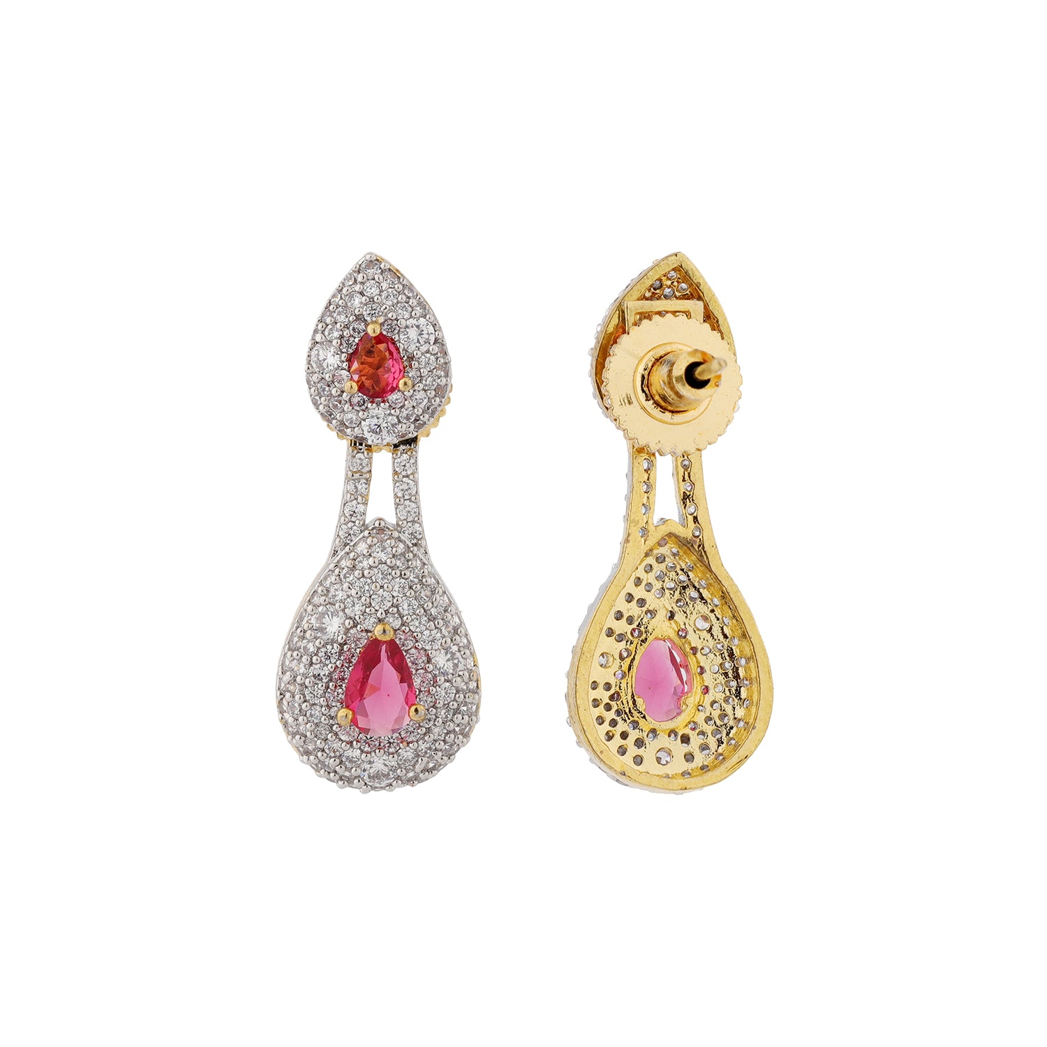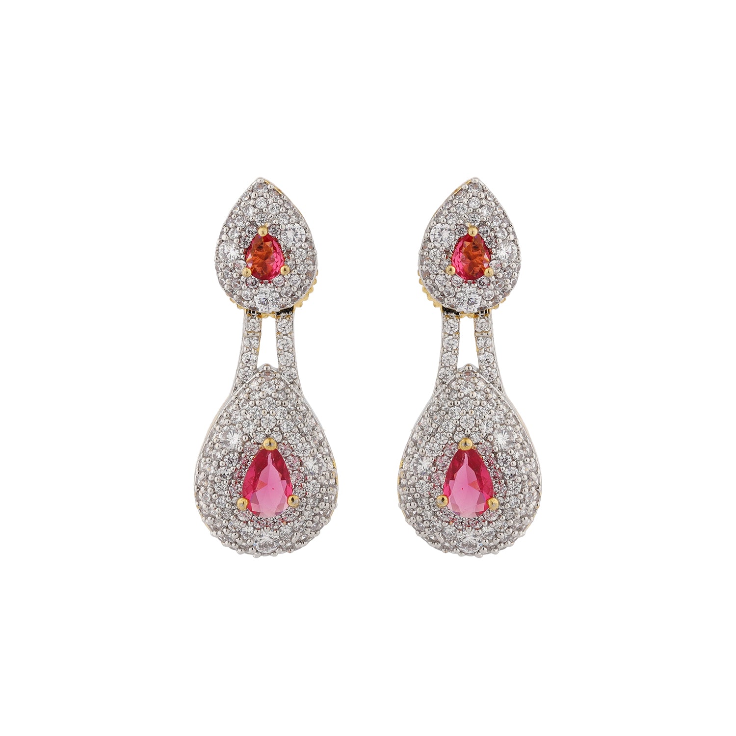 Sparkling Elegance Ruby Royal Interchangeable American Diamond Jacket Earrings