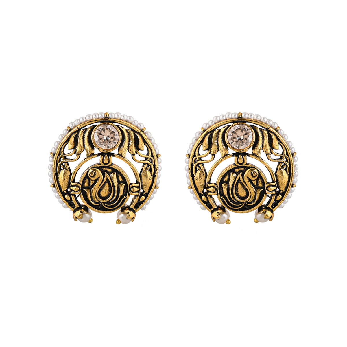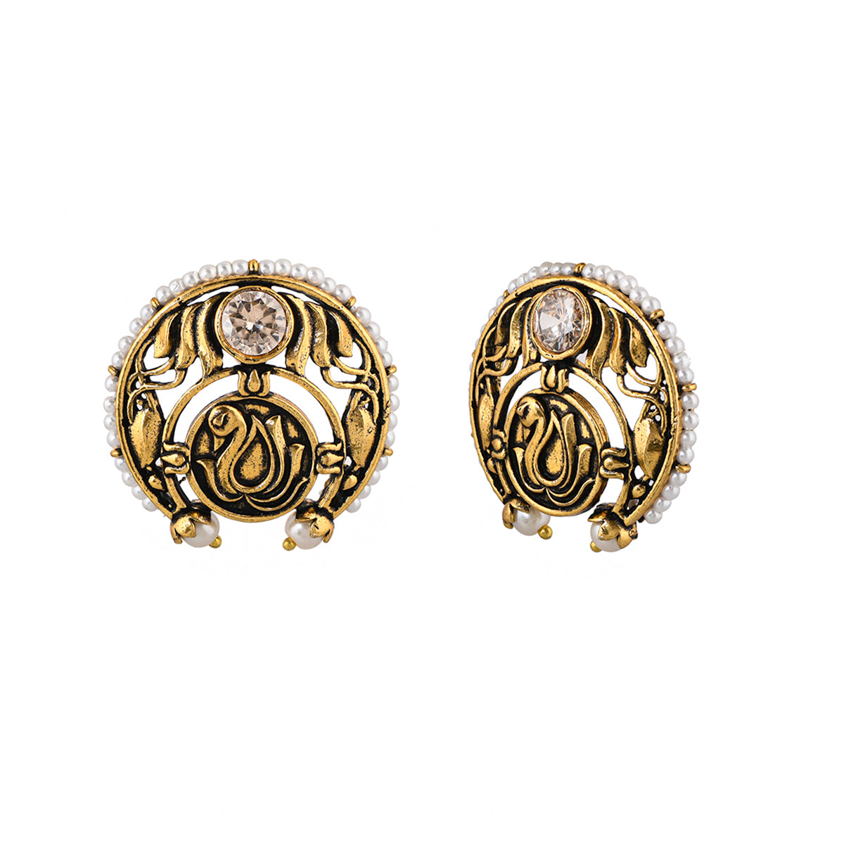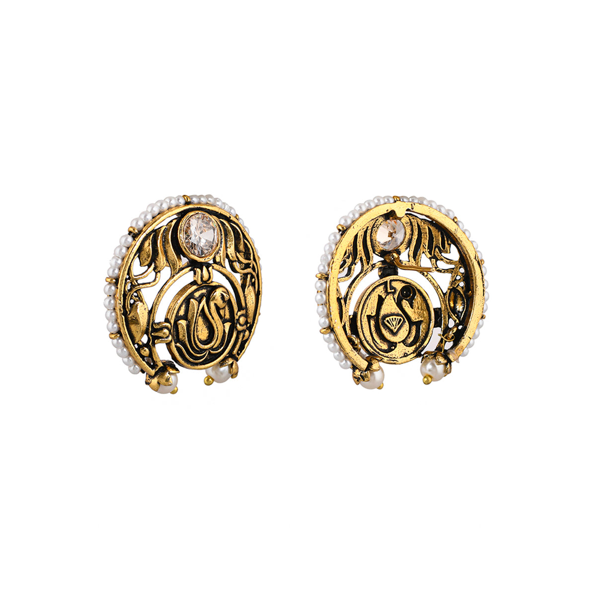 Apsara Peacock Motif Pearls Stud Earrings