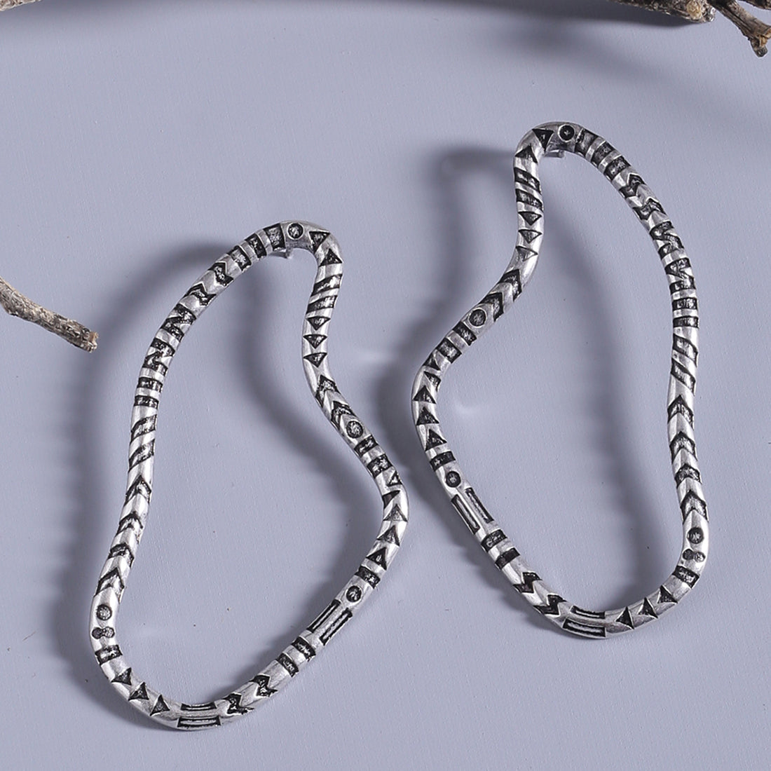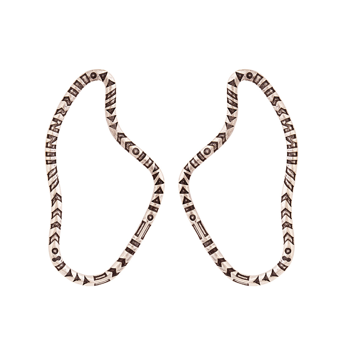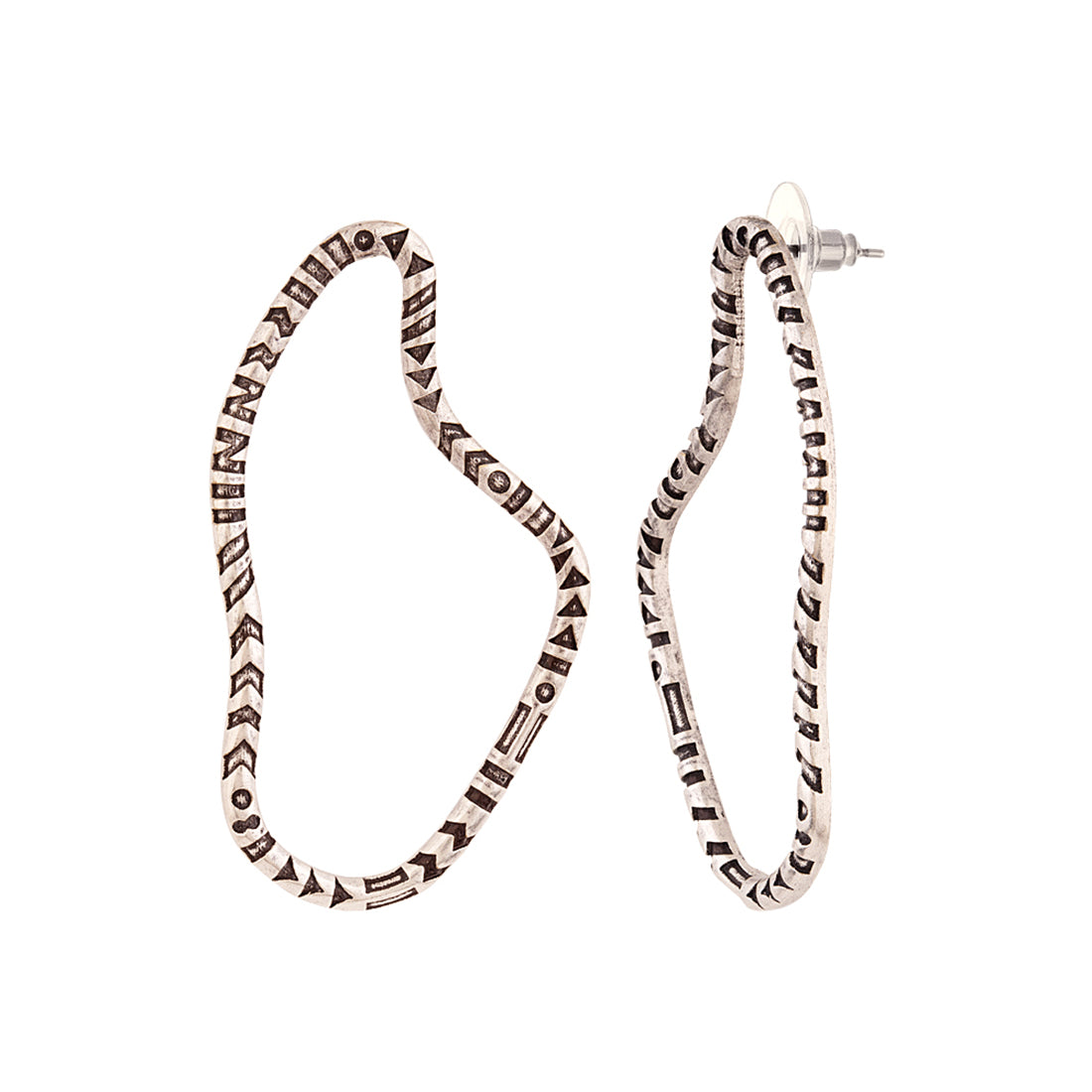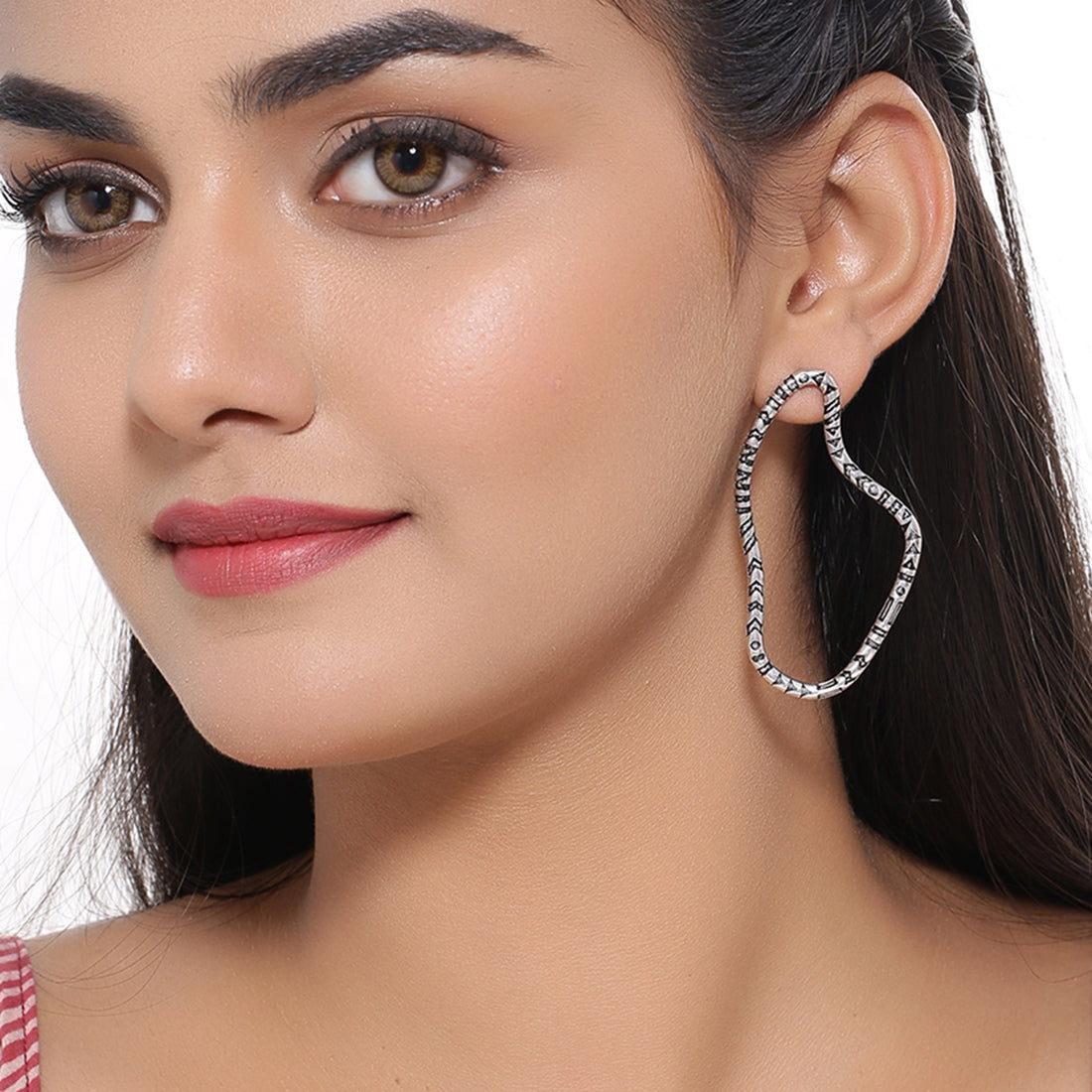Brass textured surface irregular shaped earrings. Oxidised silver plated. Wear with a party dress.