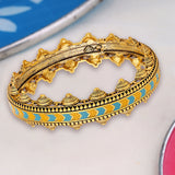 Domes motifs cutwork design bracelet, inspired by the fort of Gwalior and its architecture. Enameled and oxidised gold plated, the brass bracelet can be paired with formal ethnic and Indo-Western looks. This piece of jewelry comes with the Voylla assurance of quality and durability.