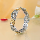 Embrace your cultural roots with this exquisite Oxidized Cuff Bangle for Women, featuring timeless Indian motifs. Crafted with care by skilled artisans, this bangle showcases the sacred fish motif, symbolizing abundance and fertility in Indian tradition. The mixed plating of silver and gold alongside an antique oxidized look gives this piece an heirloom quality that’s perfect for pooja ceremonies, everyday elegance, or celebrating festivals like Rakshabandhan and Diwali. Whether you’re looking for a Gift for your Sister, Wife, Girlfriend, Mother, or Friend—or even as a treat to yourself—this bangle is an embodiment of heritage you can wear proudly. Its versatile design also makes it suitable as Office Wear or paired with other Bangles for Women who love to layer their jewelry.