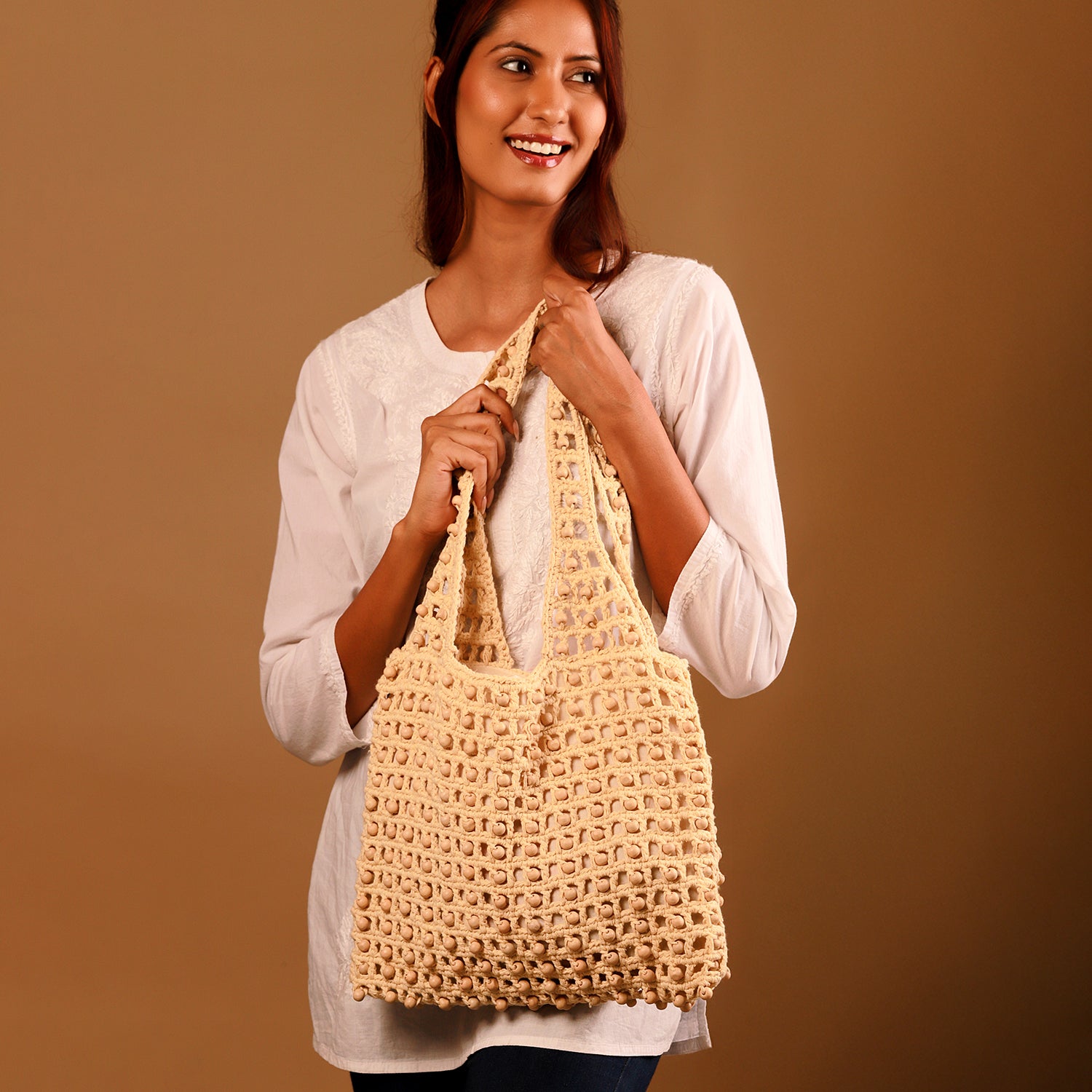 Embrace laid-back elegance with the Sandy Dune Crochet Tote Bag, a handmade treasure from our Trendy Bags Collection. Crafted from soft, sustainable fabric, this timeless crochet bag captures the essence of bohemian simplicity and coastal charm. Its neutral sand-toned hue evokes warm summer days and effortless, natural beauty making it a versatile piece that complements any outfit. The intricate open-weave crochet pattern adds depth and texture, giving this boho tote a beautifully relaxed silhouette. Lightweight yet spacious, it’s perfect for your everyday adventures, whether you’re heading to the farmer’s market, the beach, or a cozy coffee date. Designed for women who value craftsmanship, comfort, and conscious living, the Sandy Dune Tote is both a sustainable fashion accessory and a heartfelt handmade gift.