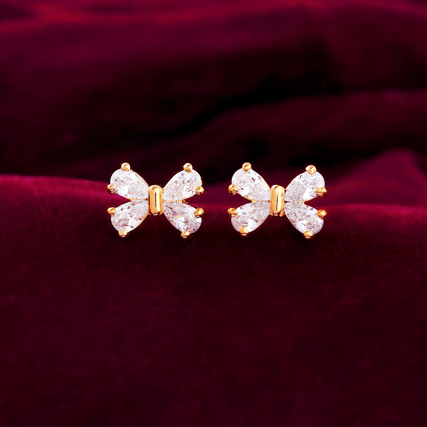 Discover the epitome of elegance with our Trendy Twinkling Bows Stud Earrings. Crafted from high-quality brass and adorned with luxurious gold plating, these earrings feature a delicate bow design encrusted with sparkling American diamonds, making them a perfect addition to any jewelry collection. Ideal for various occasions, from festive celebrations to daily wear, these versatile earrings can effortlessly elevate your look. The shimmering stones catch the light beautifully, adding a touch of glamour to your ensemble. Whether you're dressing up for a wedding, a cocktail party, or a romantic date, these earrings are sure to make a statement. They also make a thoughtful gift for women on special occasions like Valentine's Day, Diwali, Rakshabandhan, Christmas, and New Year. Surprise your loved ones—be it your sister, girlfriend, wife, or mother—with these exquisite earrings that symbolize timeless beauty and sophistication.