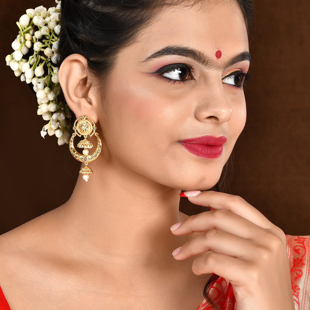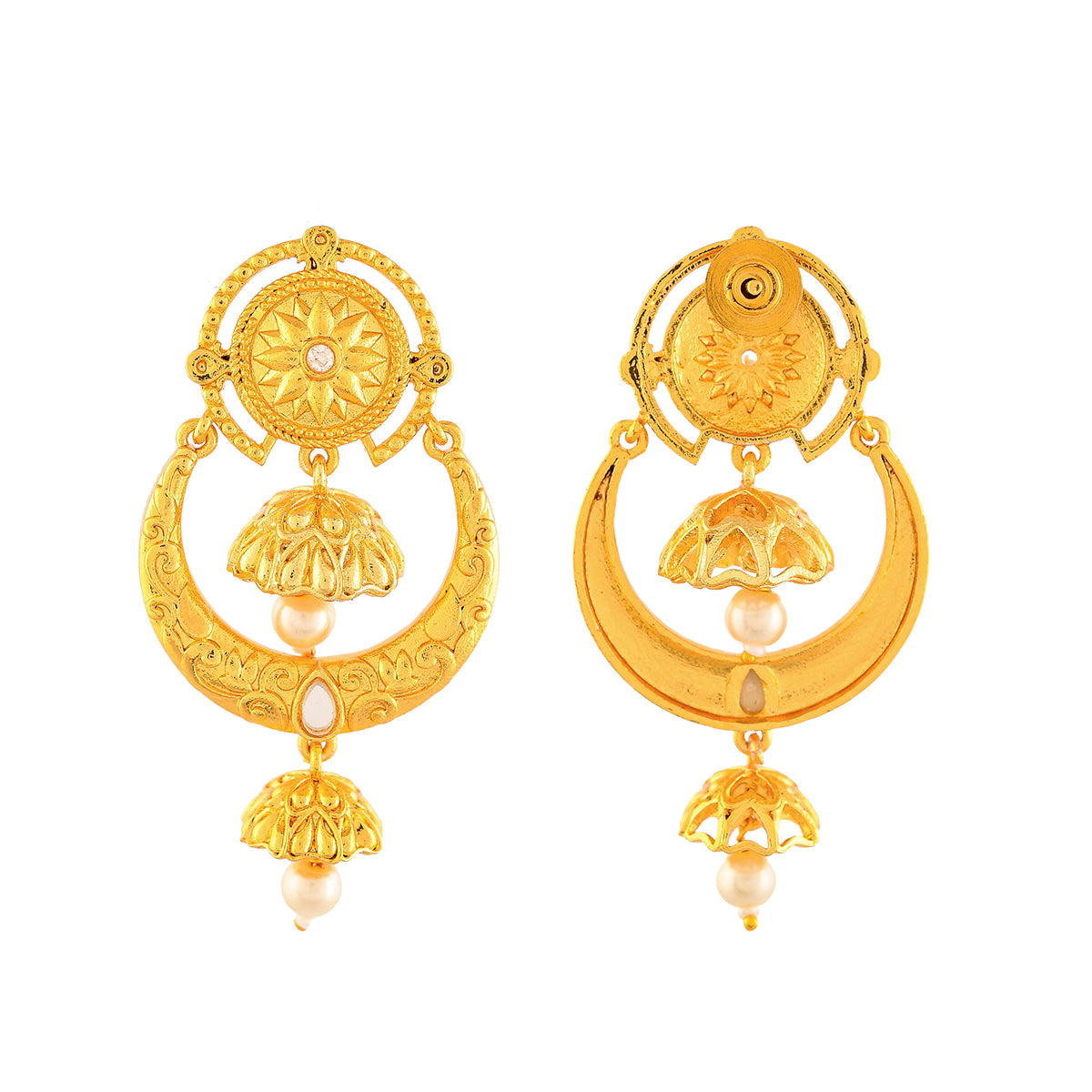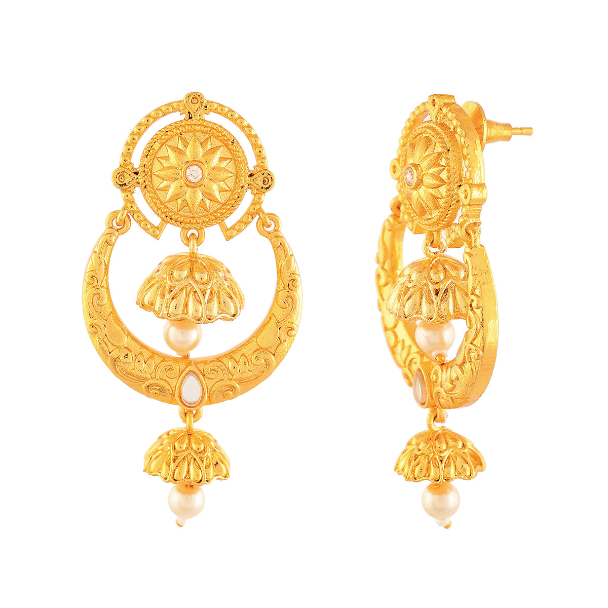 Gold Elegance Meenakshi Crescent Jhumka Earrings