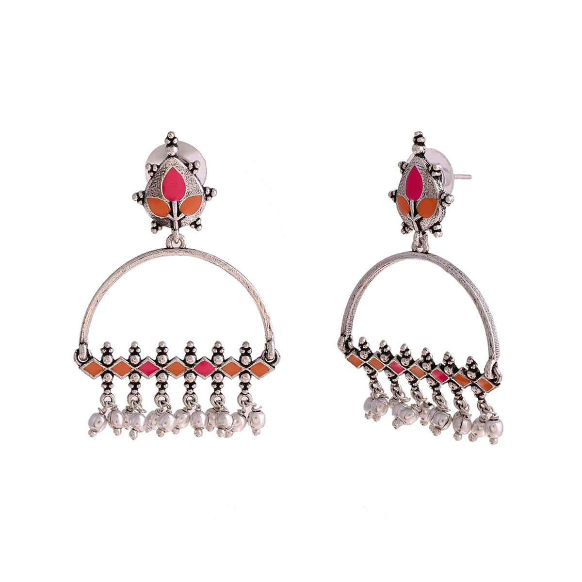Navratan Chandra Pearl Dangle Chandbali Earrings