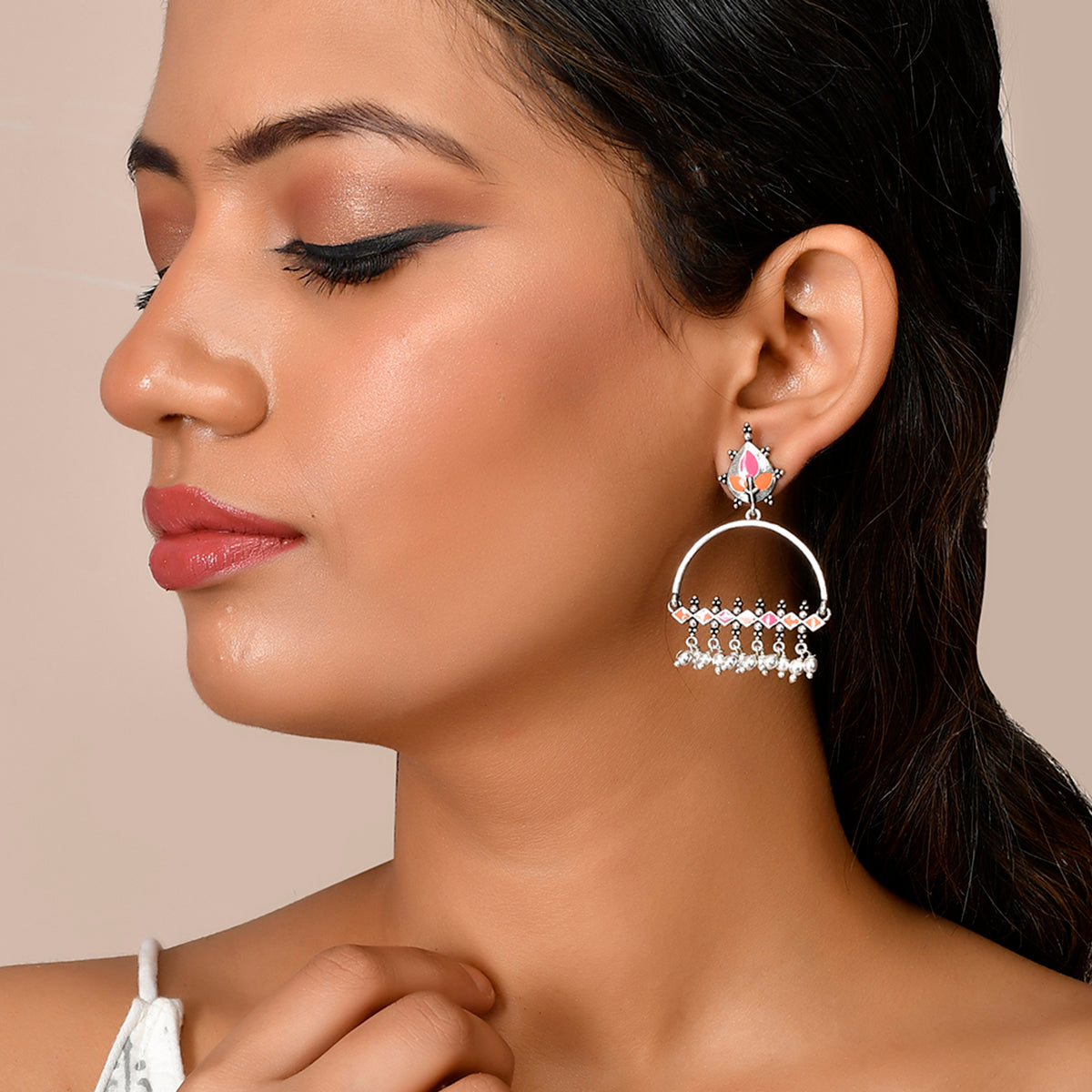 The Shahi Dwar Leher Silver Dangler Earrings are a poetic blend of regal architecture and modern sophistication. Inspired by the magnificent arches of Jaipur’s royal palaces, these earrings recreate the grandeur of heritage design in a fresh, contemporary silhouette. The...