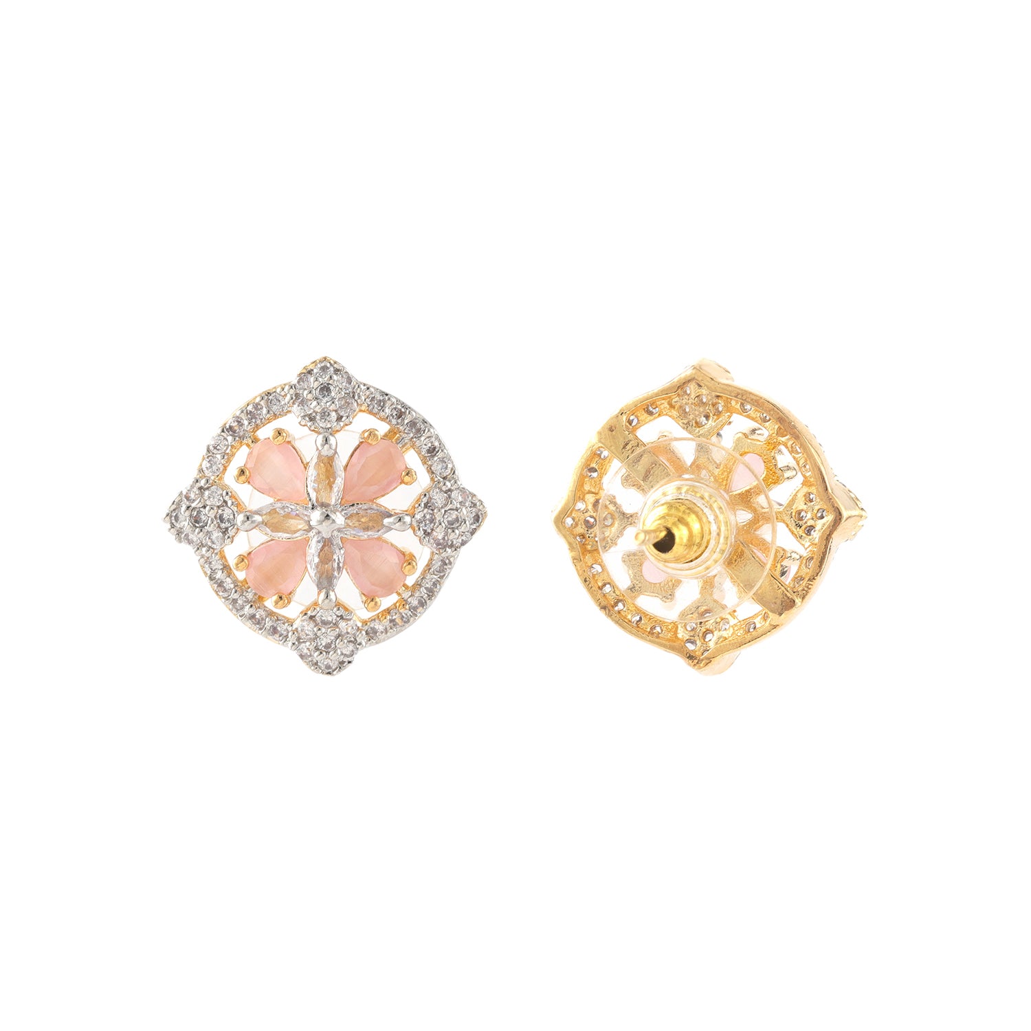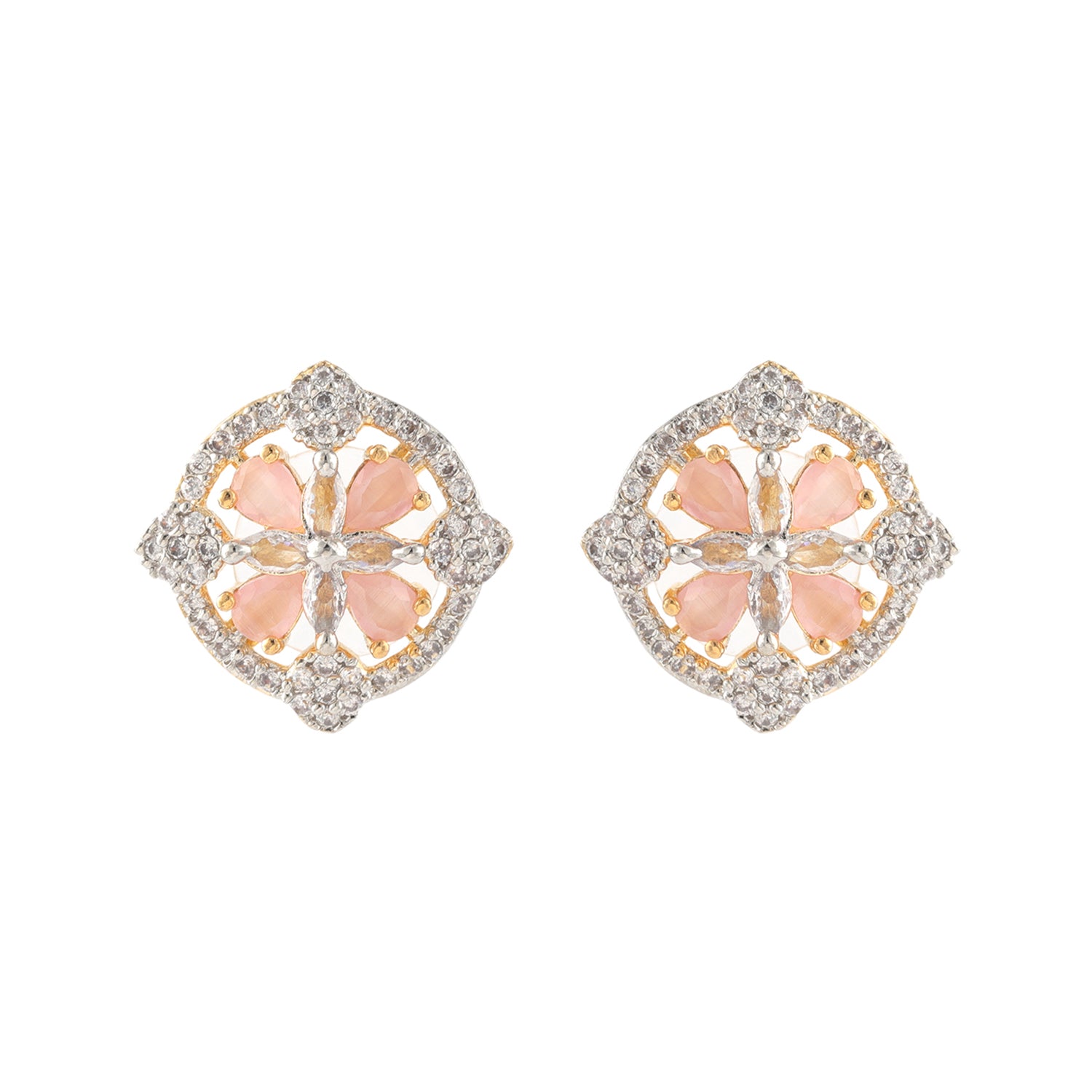 Gold Elegance Blush Petal Halo Stud Earrings