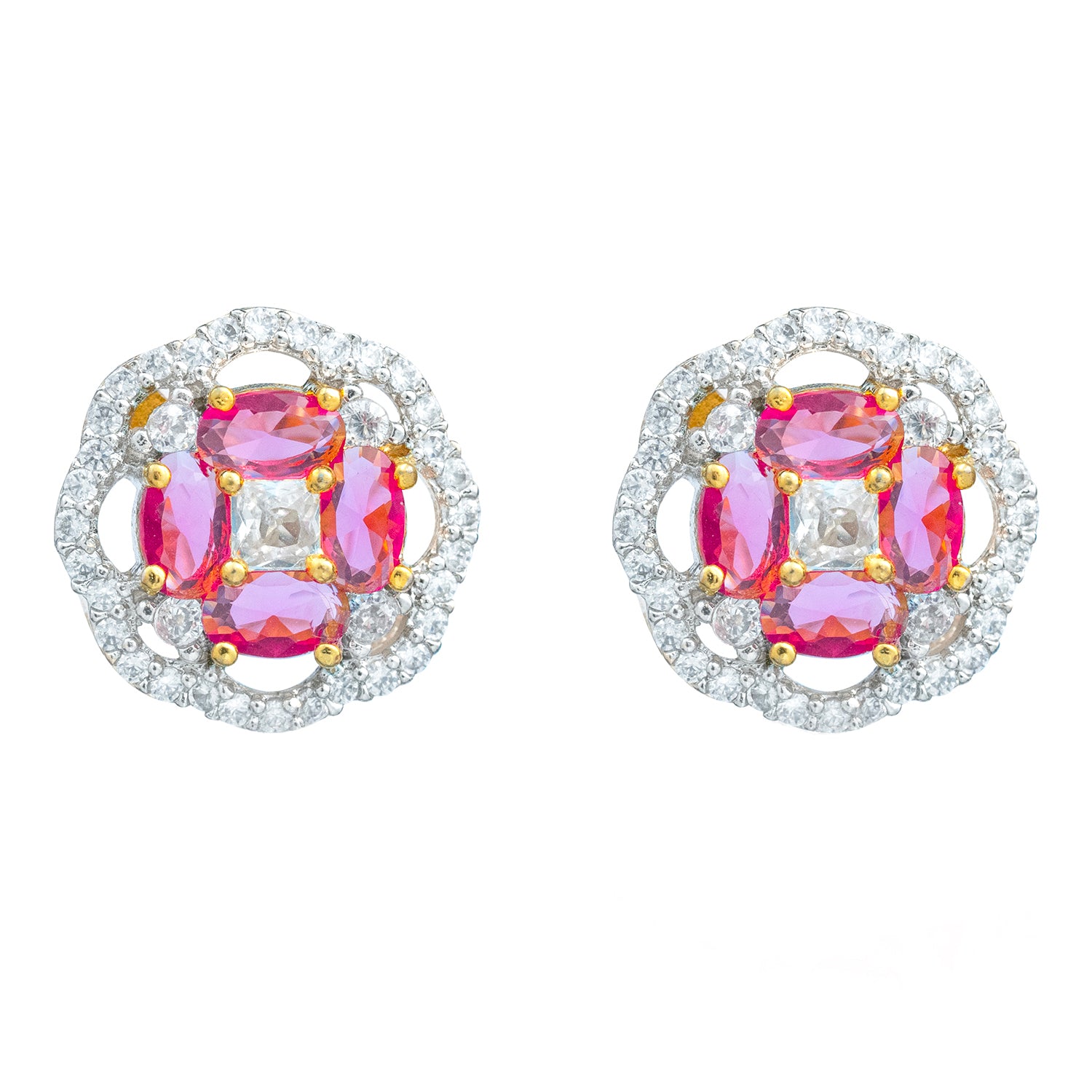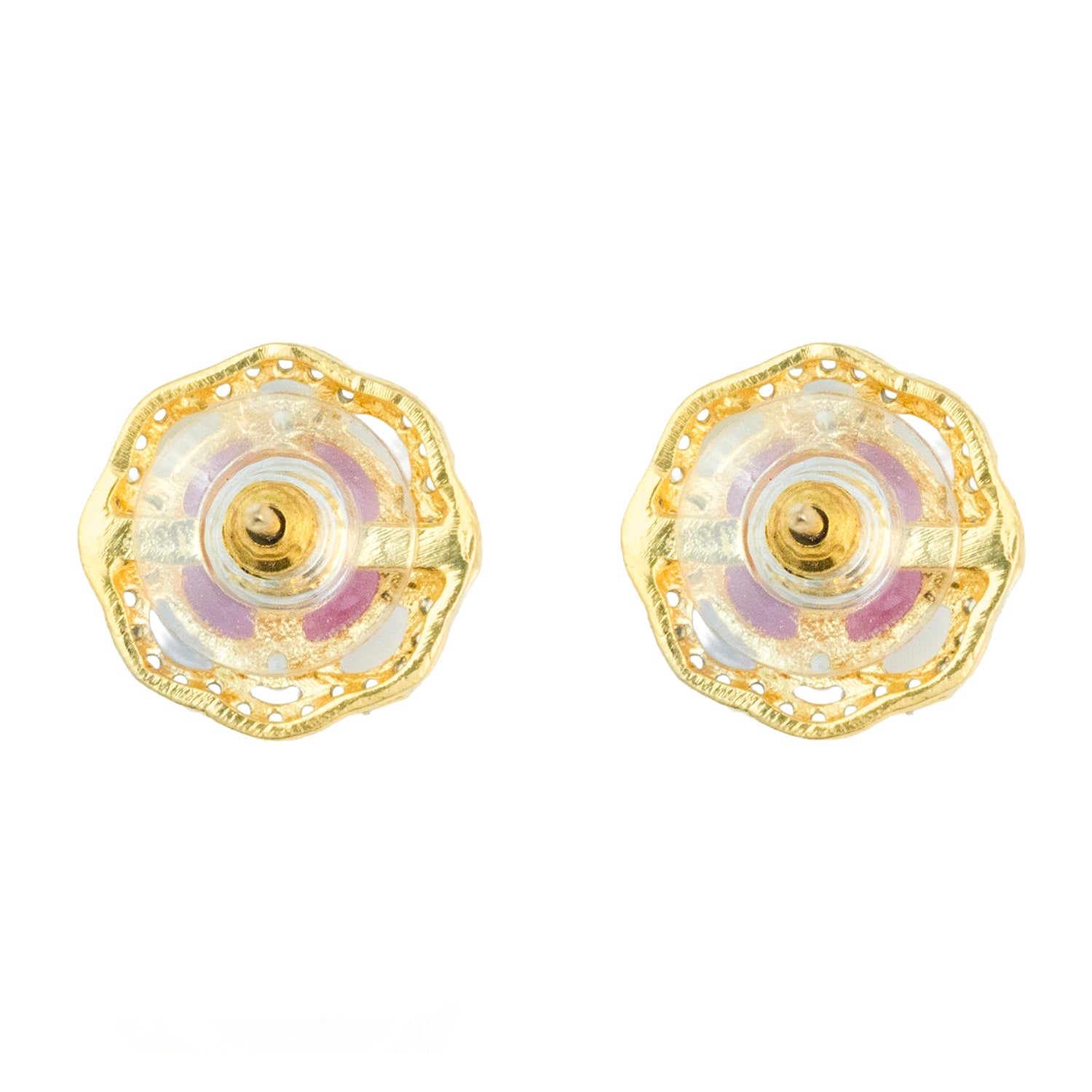 Gold Elegance Peach Crystal Bloom Cz Stud Earrings