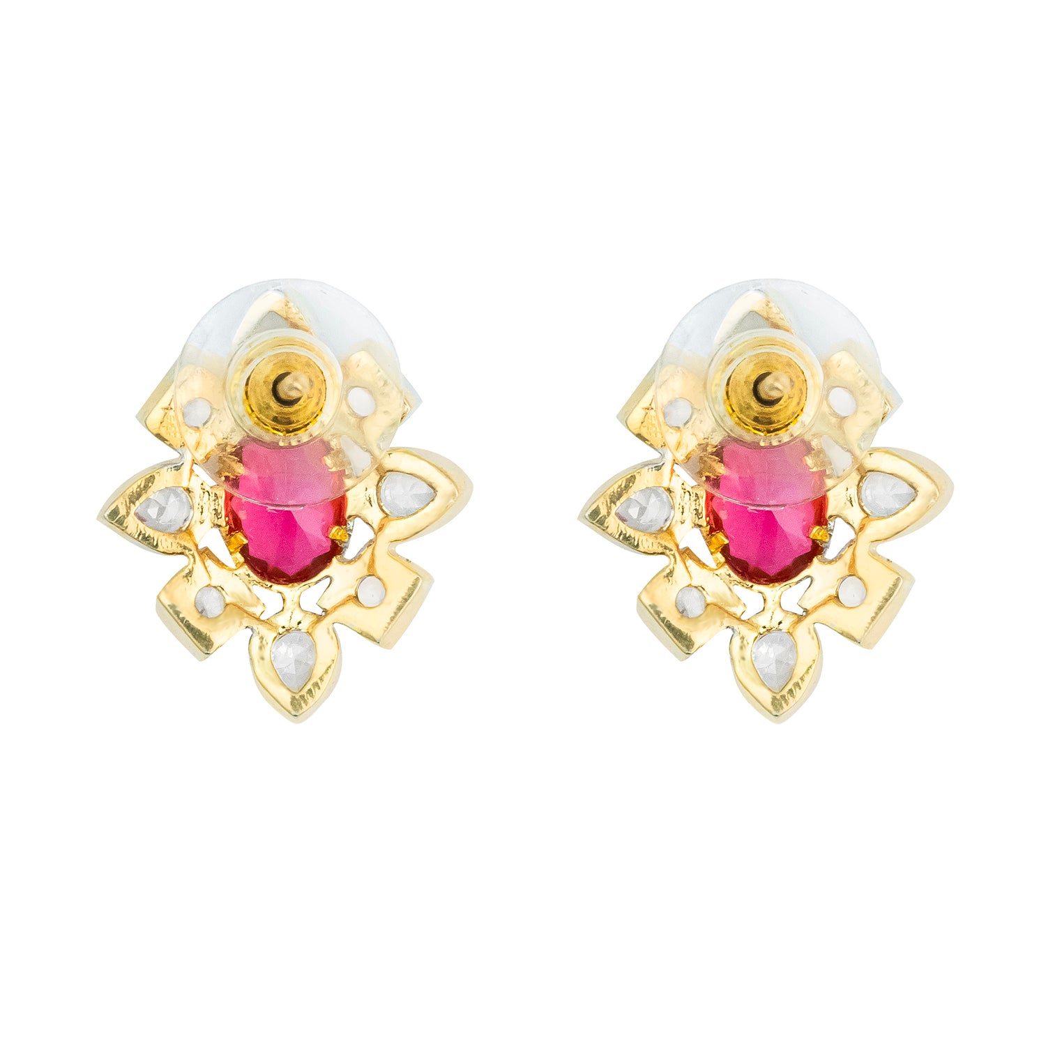 Gold Elegance Pink Aura Blossom Cz Stud Earrings