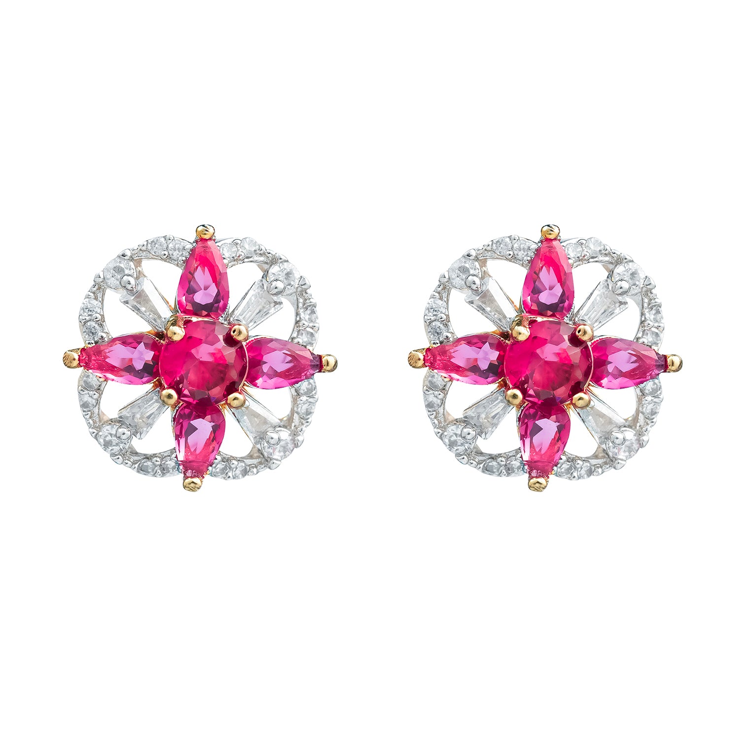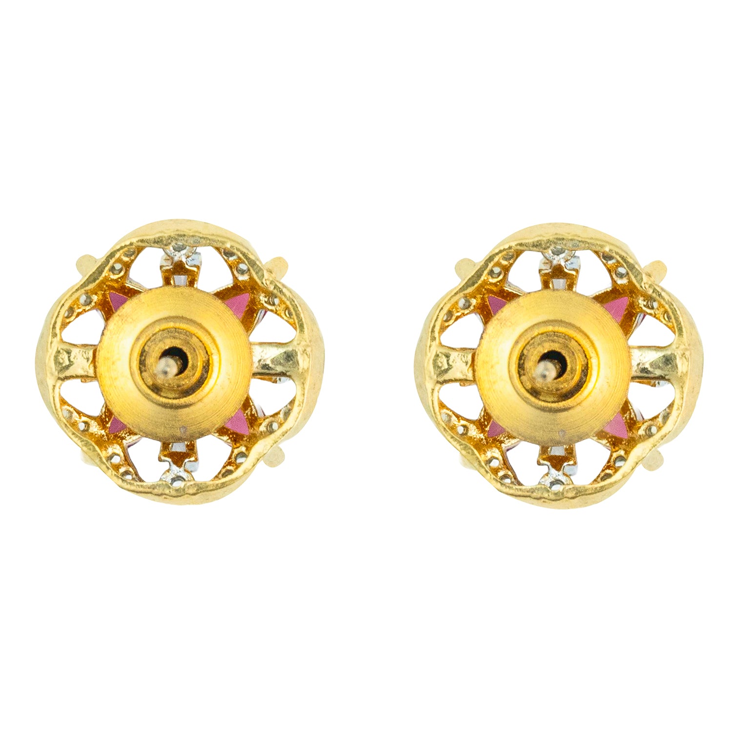 Gold Elegance Pink Starburst Cz Stud Earrings
