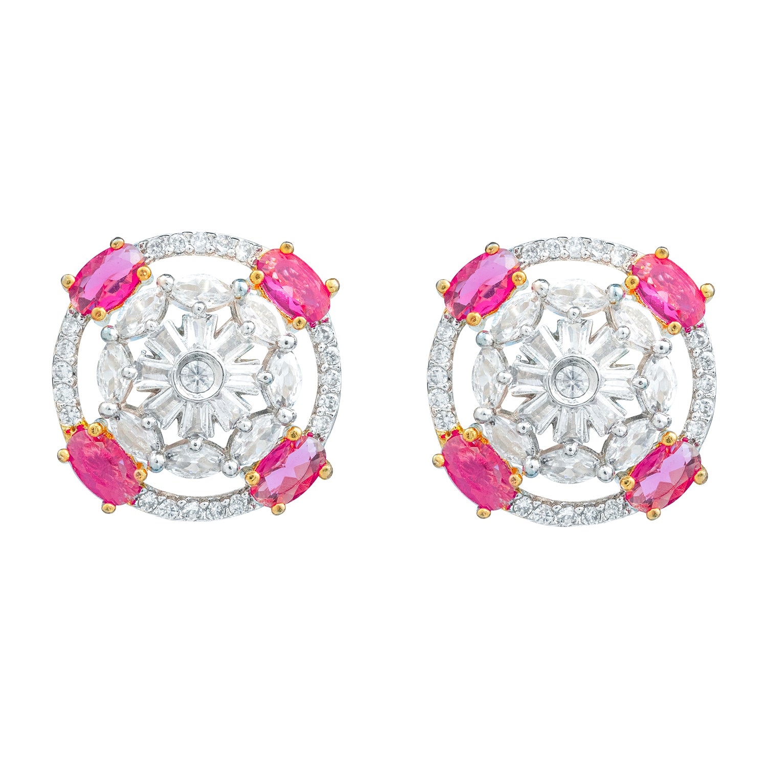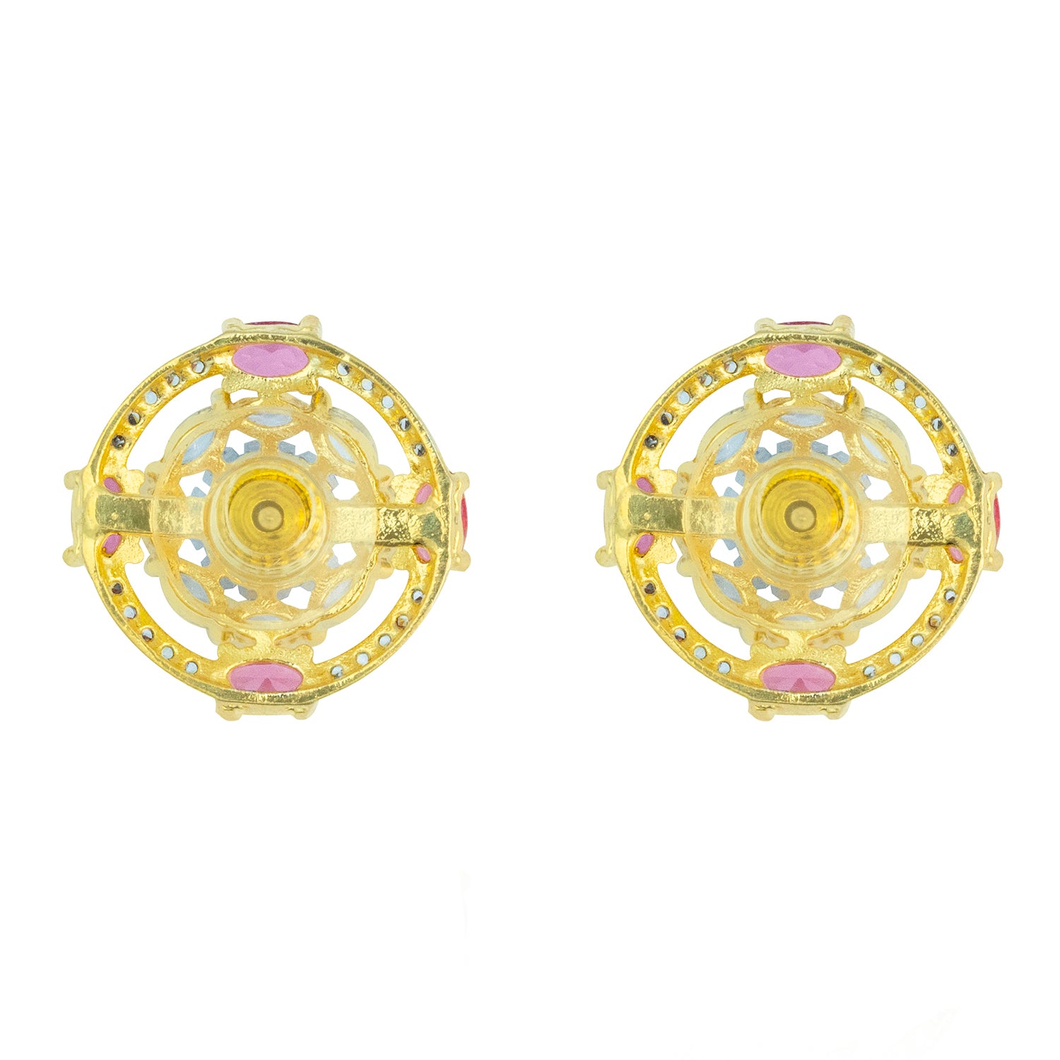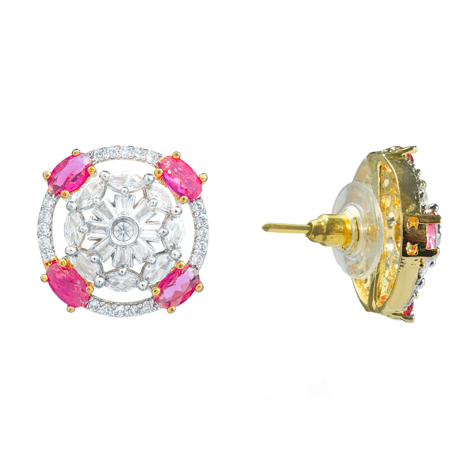 The Gold Elegance Radiant Floral Stud Earrings bring together everyday comfort and elegant sparkle in a beautifully refined design. Part of the premium Gold Elegance Collection, these versatile women earrings feature an intricate floral-inspired centerpiece crafted with shimmering CZ stones and enhanced with subtle pink and orange gemstones for a fresh, lively appeal. The standout feature is the two-tone plating, combining warm gold and soft rhodium tones that create a balanced, versatile look suitable for any outfit.mMade from high-quality brass and finished with premium two-tone plating, these studs offer long-lasting shine, durability, and lightweight comfort, making them perfect for regular wear. Ideal for working women, office-goers, teachers, college students, and anyone who prefers jewellery that blends seamlessly with ethnic or semi-formal attire. Whether paired with simple sarees, kurtis, salwar suits, or festive wear, these earrings add just the right amount of grace. Stylish, functional, and meaningful, they also make a thoughtful gift for women, suitable for your lover, wife, mother, sister, colleague, or friend.