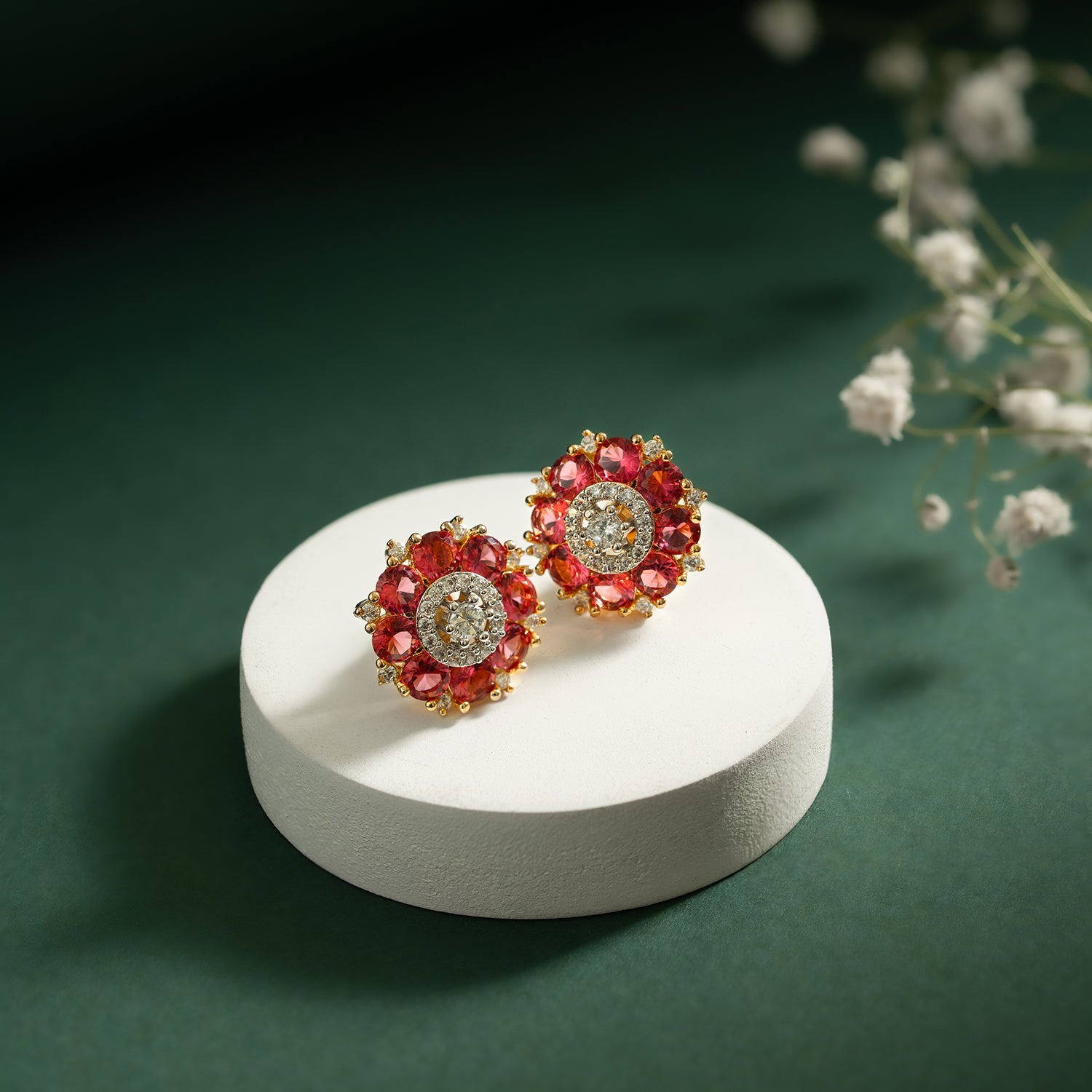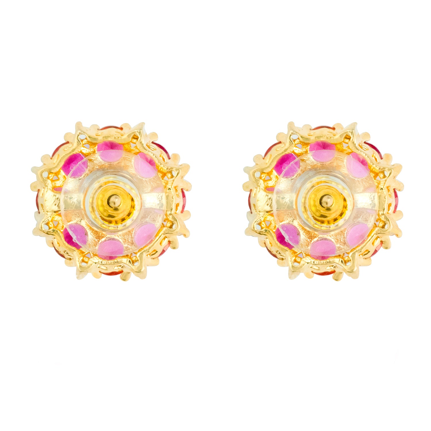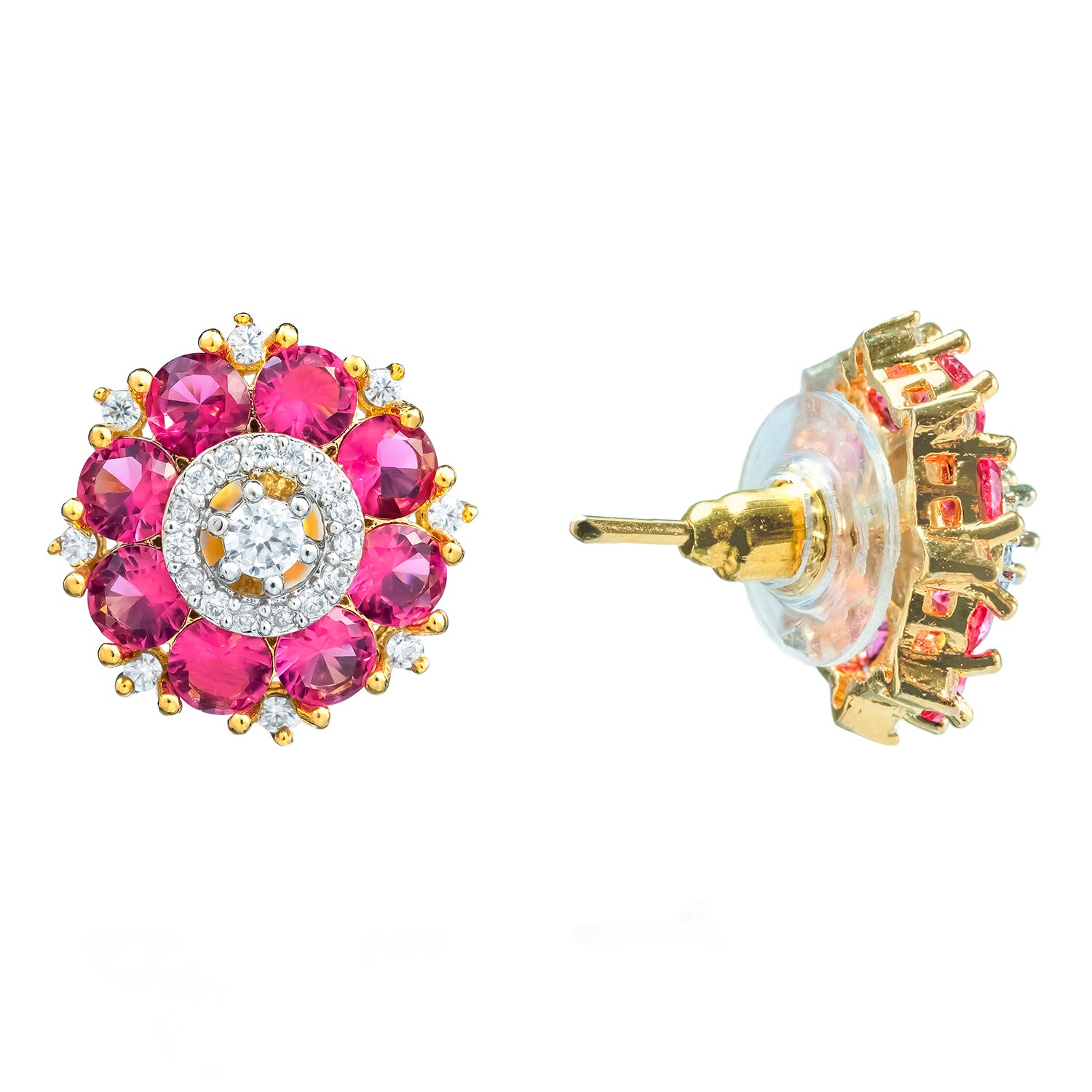 Gold Elegance Ruby Petal Glow Cz Stud Earrings