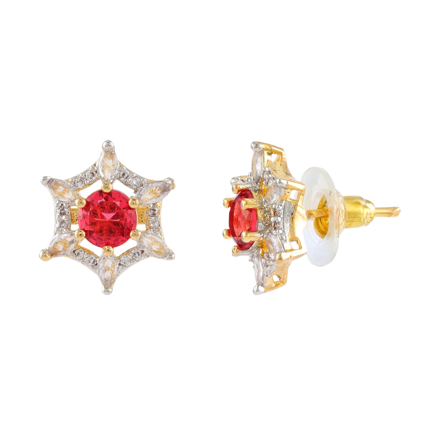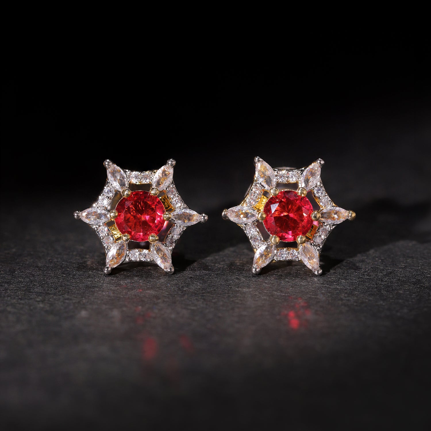 Gold Elegance Scarlet Halo Star Stud Earrings