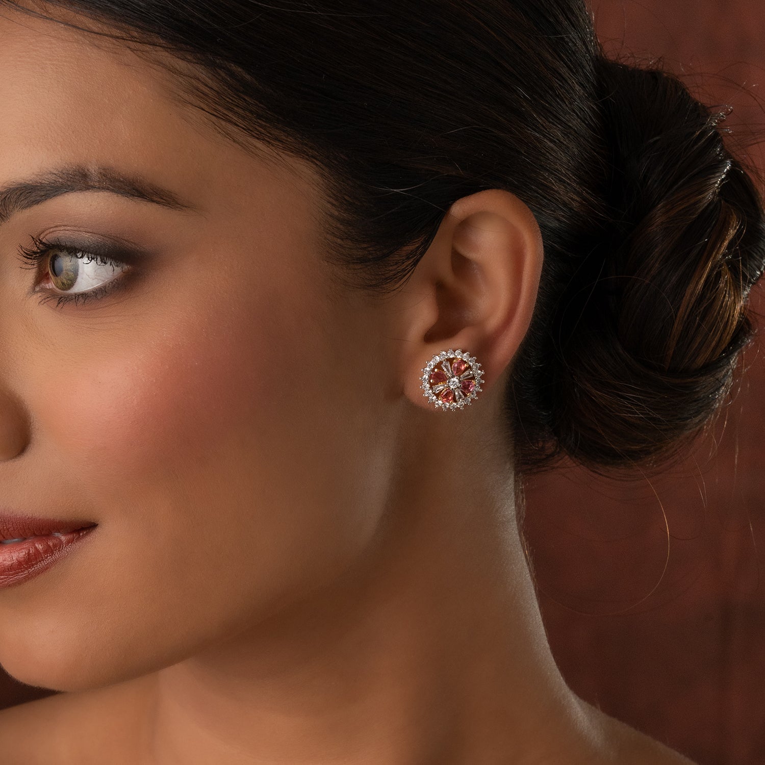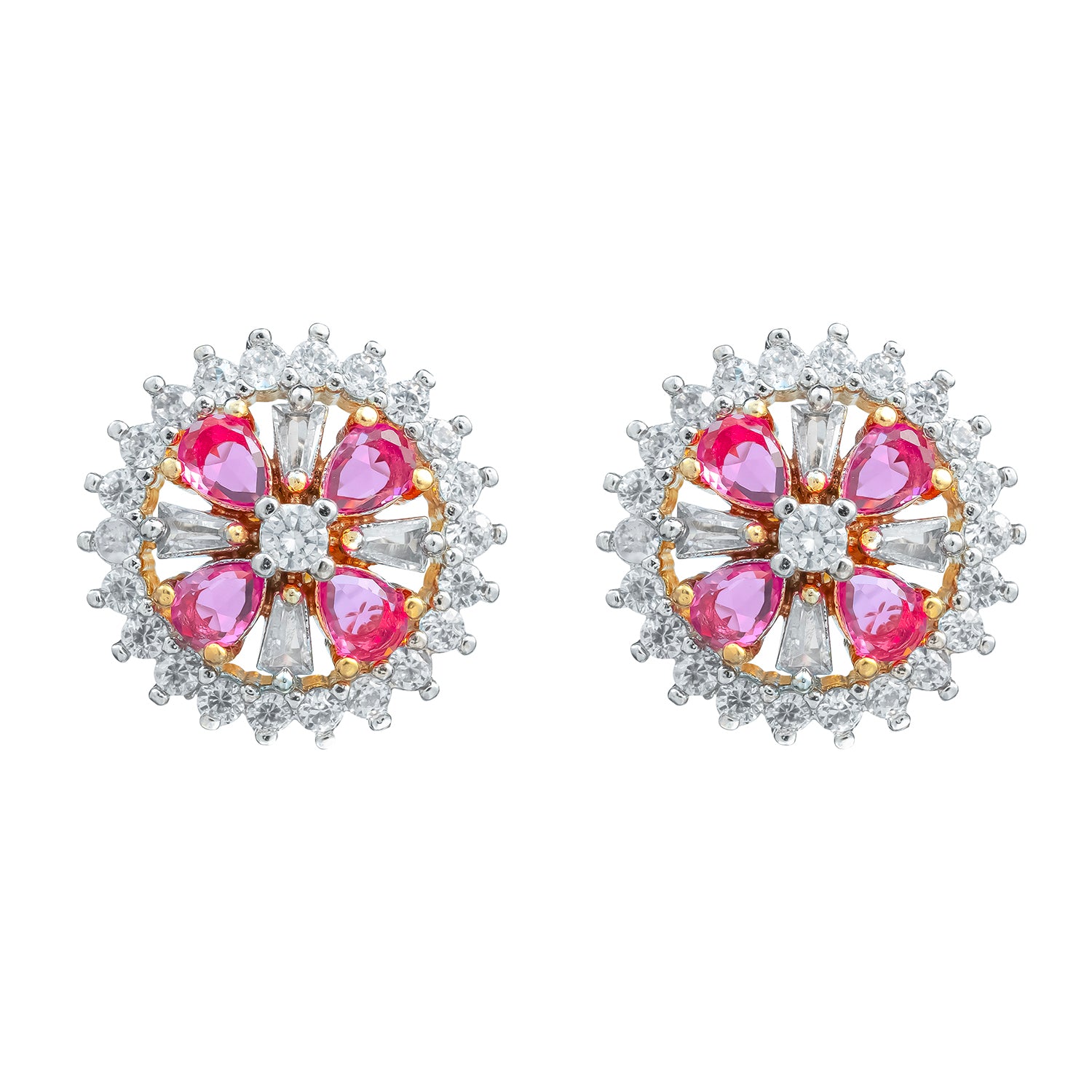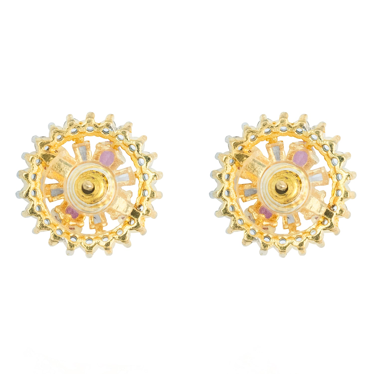 The Gold Elegance Sunrise Petal Stud Earrings are crafted to bring effortless beauty to your everyday and festive looks. A part of the exclusive Gold Elegance Collection, these stunning women earrings feature a radiant circular floral design with peach–pink petal stones arranged around a shimmering CZ/American Diamond center. The delicate outer halo of sparkling CZ stones adds a refined brilliance, making these studs elegant without being overpowering. Crafted using premium brass and finished with luxurious two-tone plating, a sophisticated blend of warm gold and cool rhodium. These lightweight tops earrings for women are perfect for long hours of wear. Whether you're dressing for the office, teaching at school, attending pooja, or styling up for a festive occasion, these earrings offer unmatched versatility and comfort. A perfect match for kurtis, sarees, salwar suits, Indo-western outfits, and festive ensembles, they are also a meaningful and timeless gift for women, ideal for your lover, wife, mother, sister, colleague, or friend.