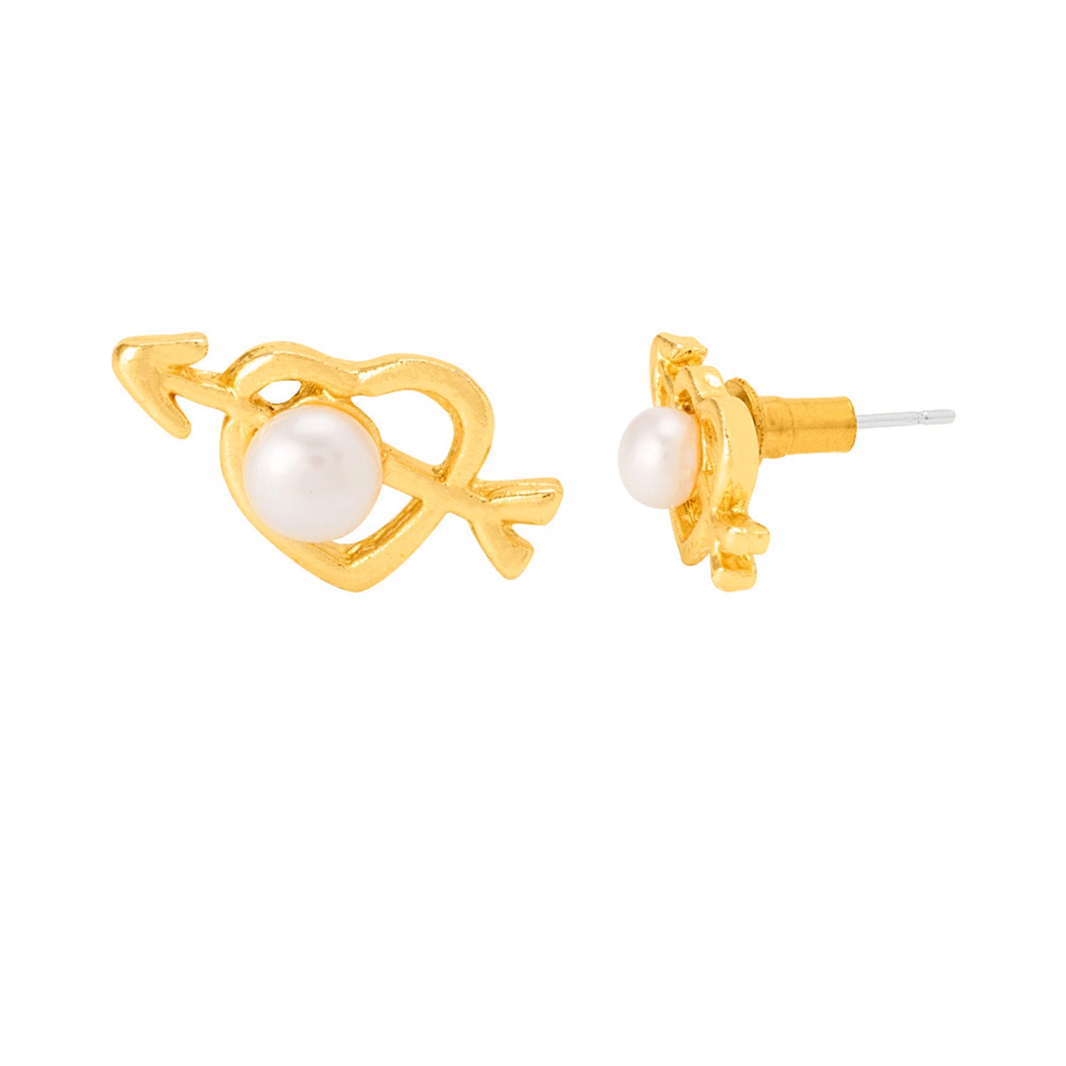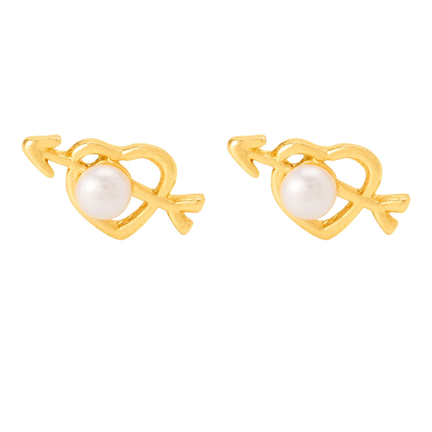 These adorable heart and arrow earrings will make a lovely addition to your collection of everyday, casual jewelry. Gold plated for maximum brilliance, the pearl embellished studs have been fashioned out of brass and promise to the a comfortable wear at all times.