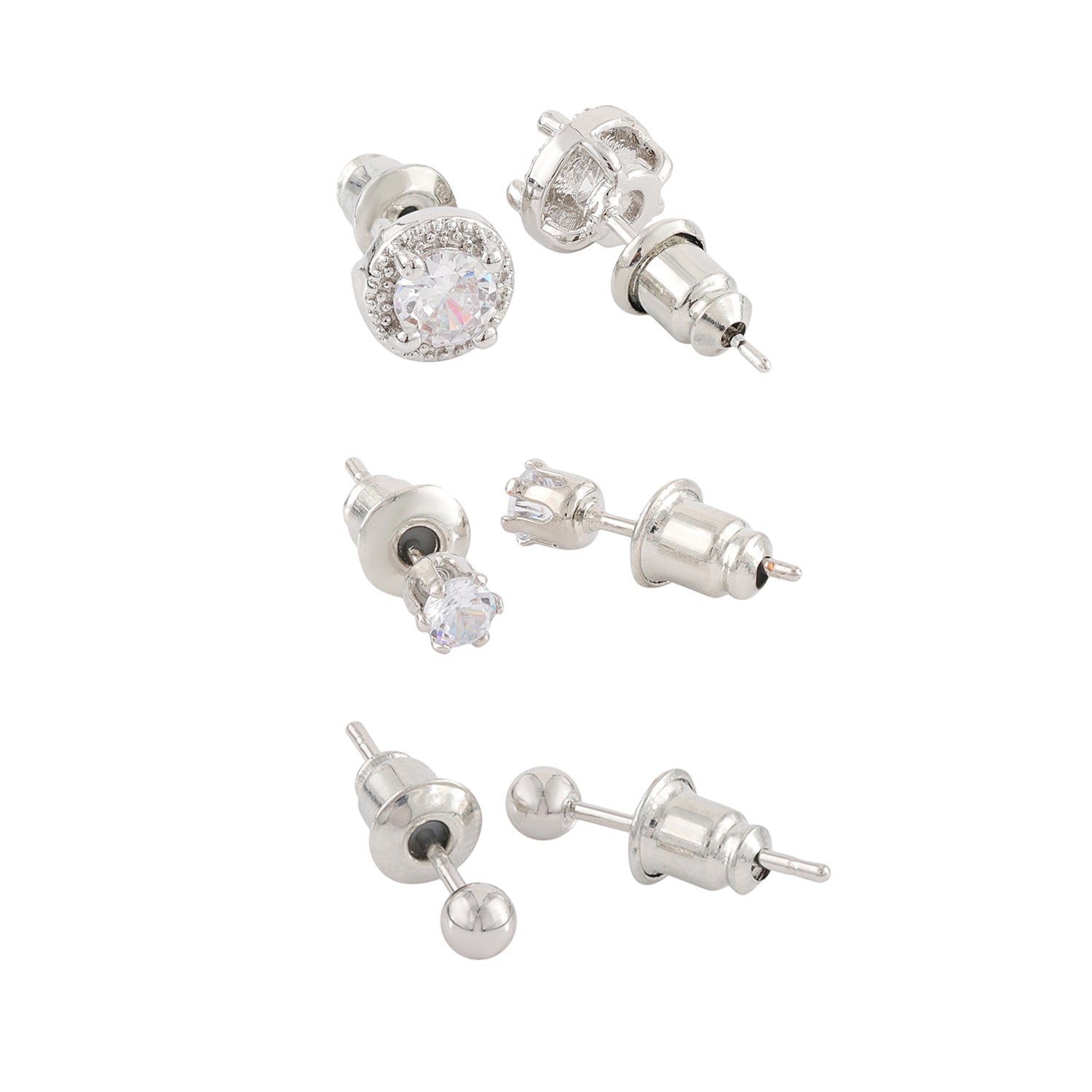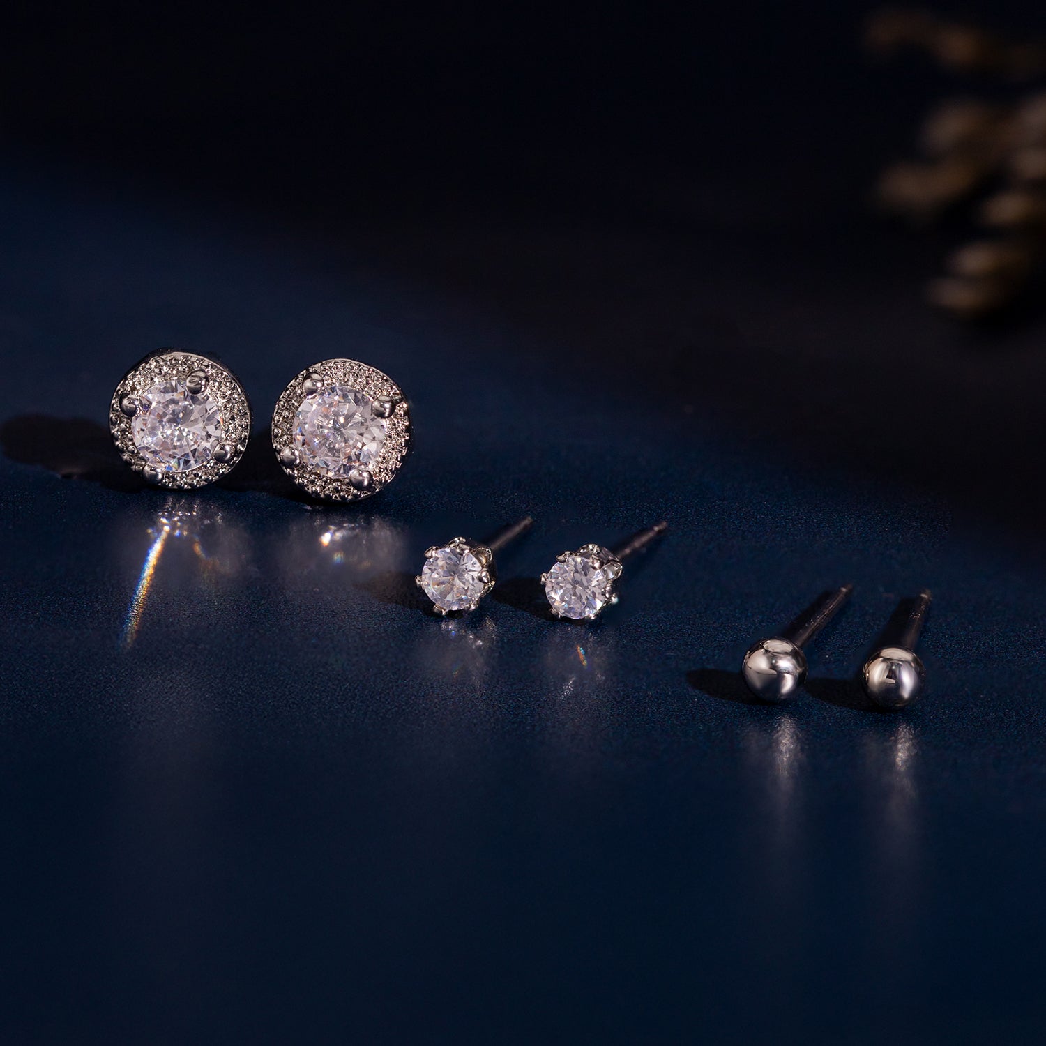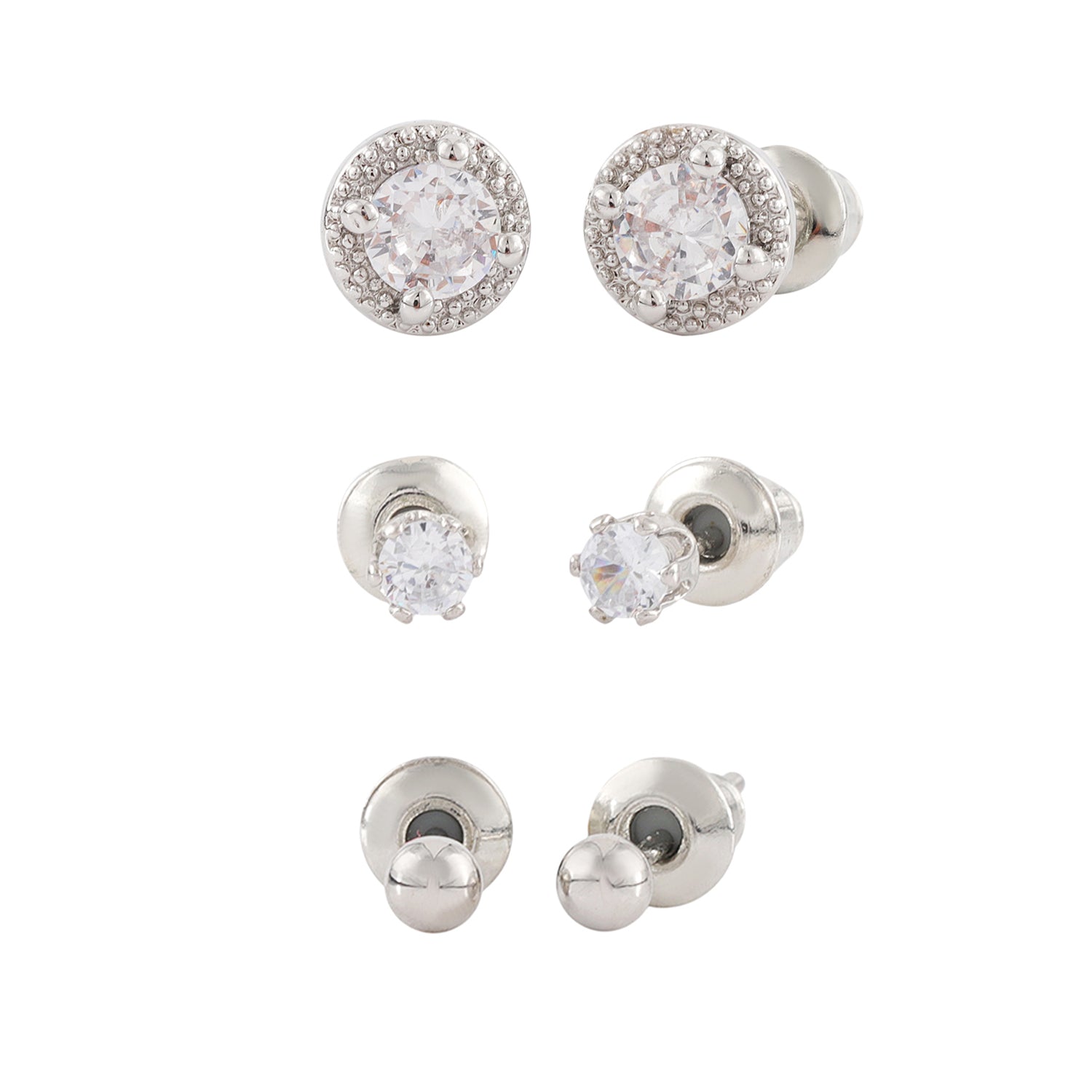 Why have just one when you can shine in three different ways? The Korean Bling Everyday Spark Set Earrings Combo brings you a versatile earrings set for women that’s perfect for every mood and occasion. Designed as part of the Korean Bling collection, this earrings combo for women includes three chic pairs of studs, a dazzling halo design with crystals, a classic solitaire sparkle, and a sleek polished ball stud. Crafted from premium alloy and plated with white rhodium, these earrings are lightweight, durable, and radiate timeless elegance.This Korean style earrings combo gives you endless styling possibilities. Wear the halo studs as Korean statement earrings for evenings out, the solitaire studs as everyday wear earrings, and the polished ball studs for minimalistic workwear chic. With this set of earrings, you’ll always have the perfect option to complement your outfit, hairstyle, or occasion. They also make an ideal gift for her, a thoughtful earrings gift that works as a gift for girlfriend, birthday present, or elegant jewellery gifts for women who love versatile, trendy earrings for women. Stylish, practical, and beautiful, this earrings set for women is an instant jewellery box essential.