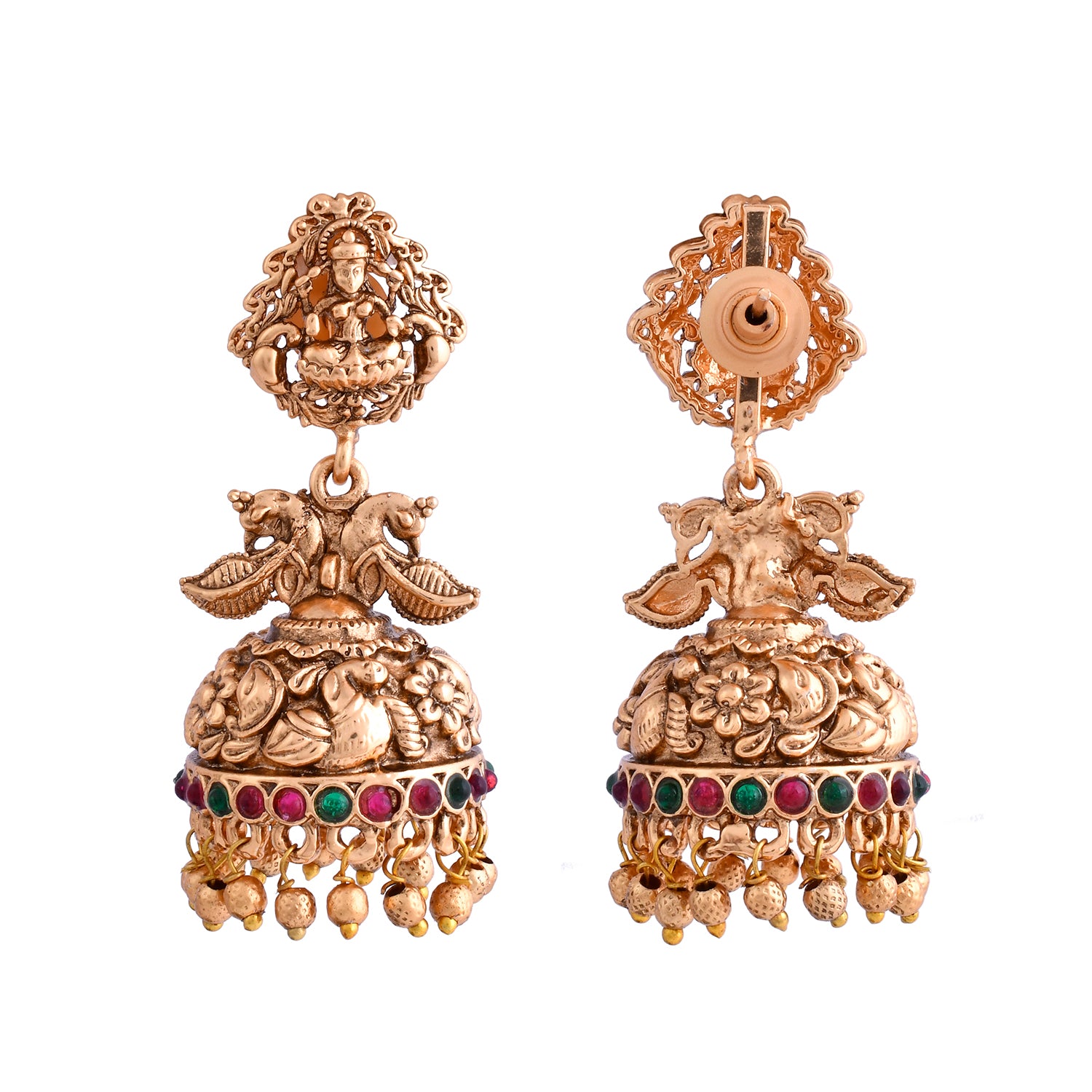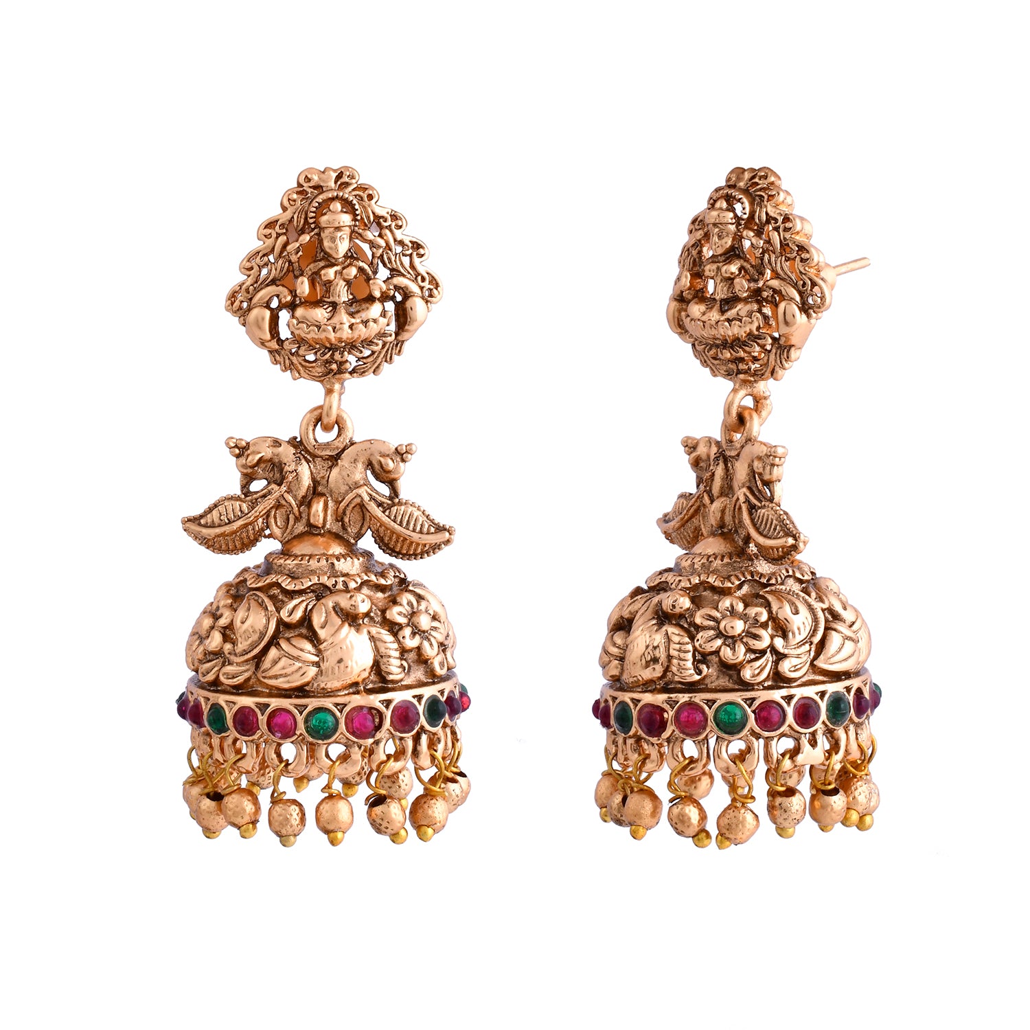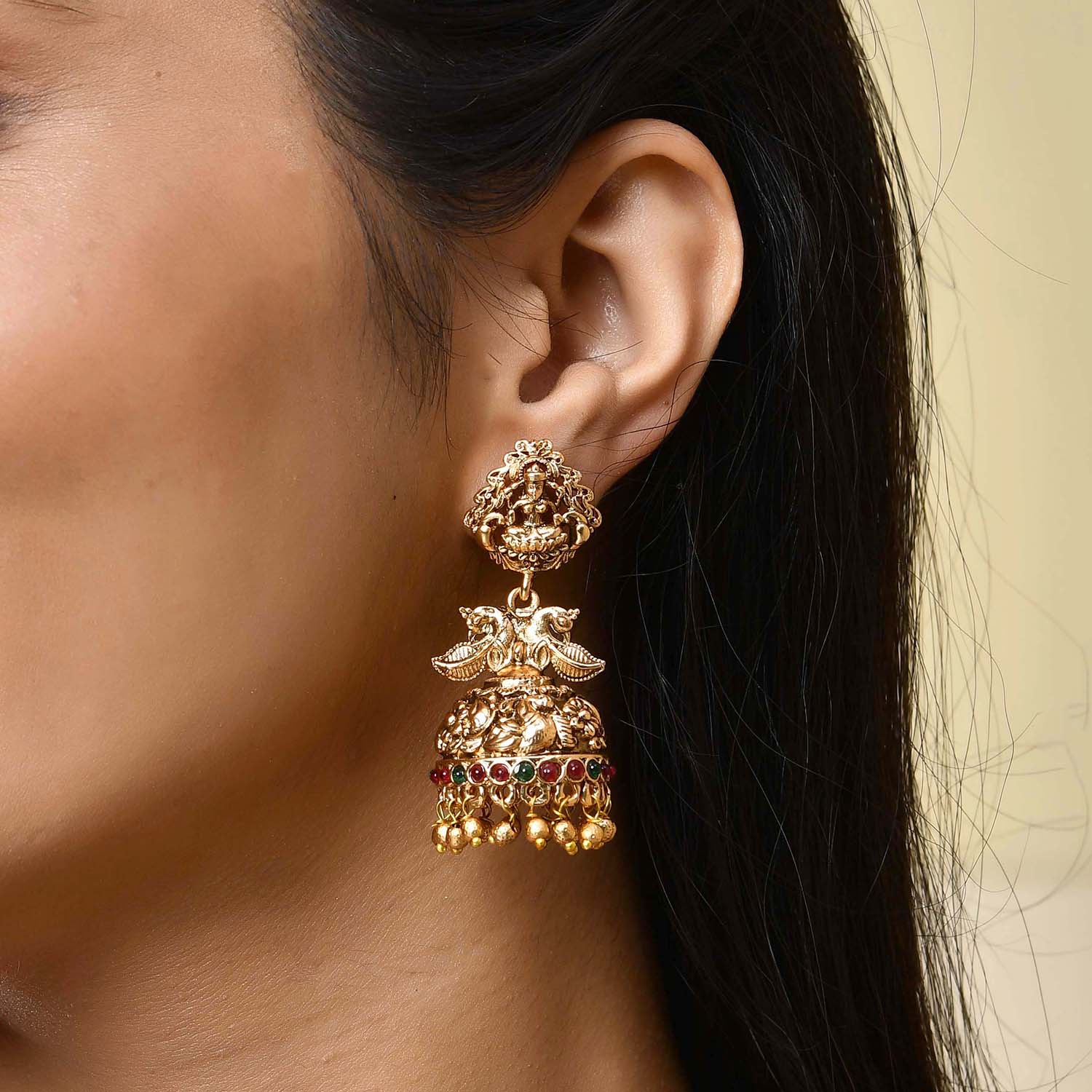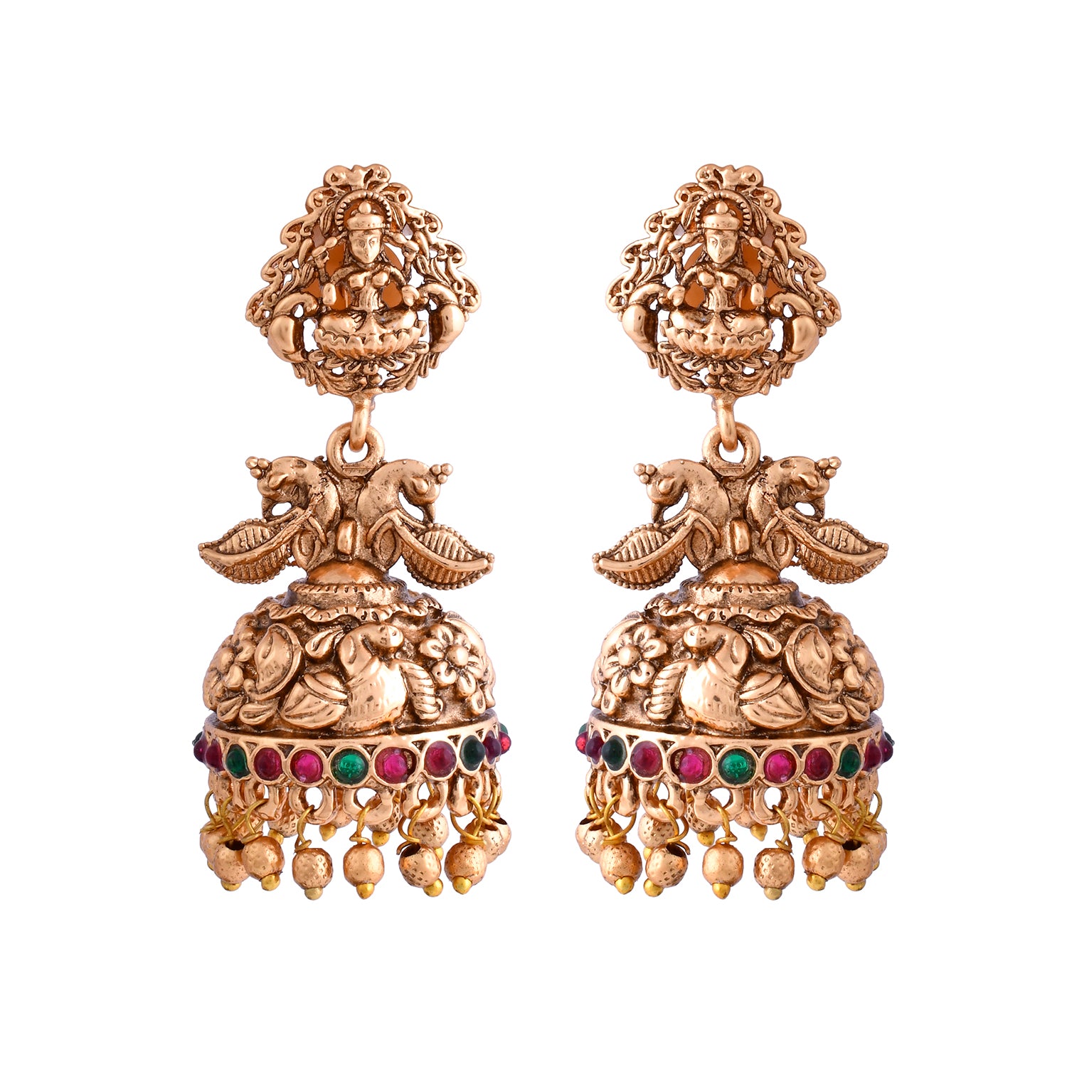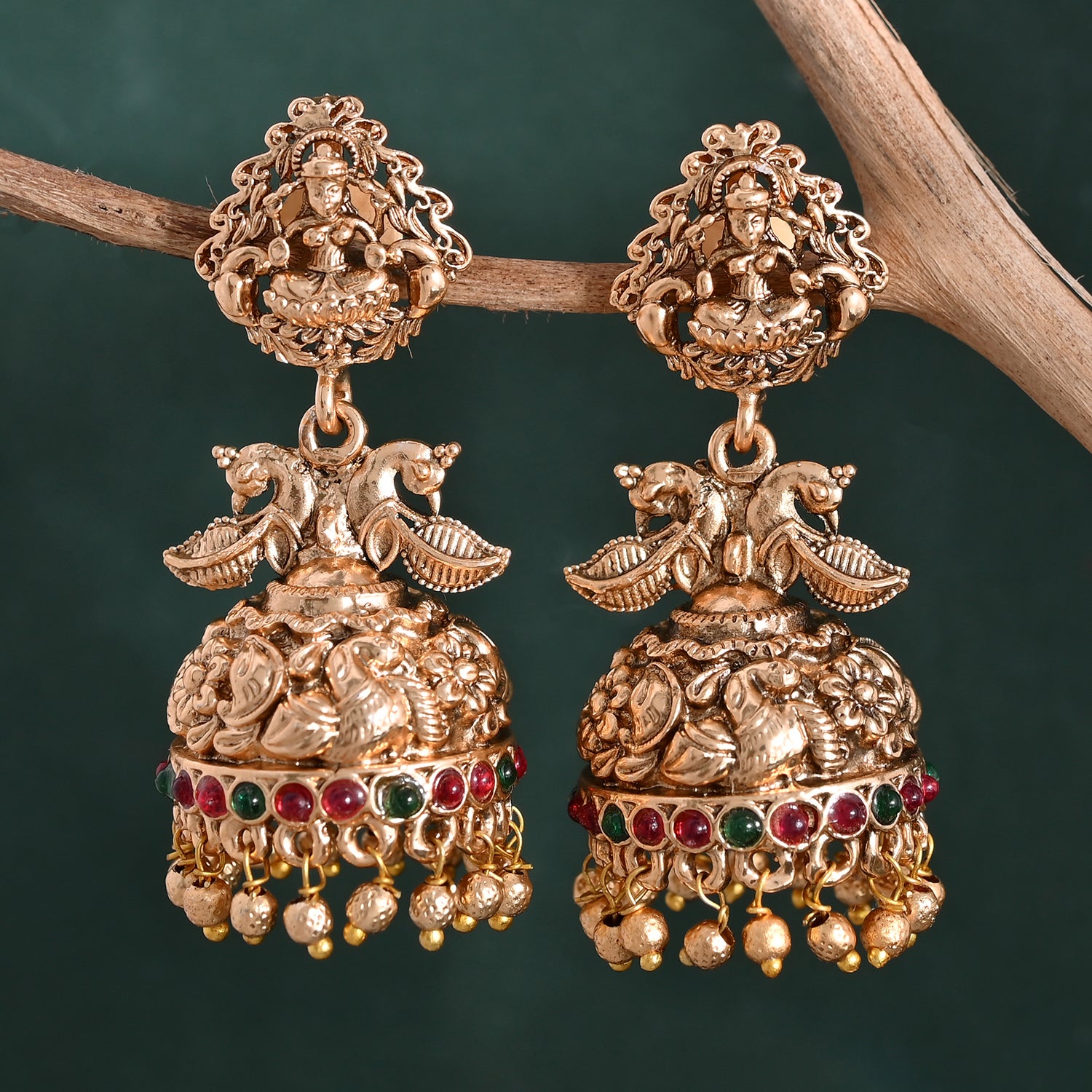 Gold Opulence Mayura Vilas Temple Jhumka Earrings