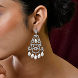 The Royal Romance Margaret Statement Earrings are a breathtaking masterpiece of opulent craftsmanship and timeless elegance. Crafted from high-quality brass and plated with white rhodium, these exquisite earrings boast a luxurious finish and durability. The intricate design showcases shimmering American diamonds and lustrous pearls, creating a regal and sophisticated allure. As part of the Royal Romance collection, these earrings seamlessly blend heritage charm with contemporary style, making them perfect for special occasions like weddings, festive celebrations, and cocktail parties. Their versatile and elegant design elevates any outfit, making them an ideal choice for gifting on occasions such as Valentine’s Day, Diwali, Raksha Bandhan, Christmas, and New Year. Whether as a thoughtful present for a girlfriend, wife, mother, or sister, these statement earrings are sure to make a memorable and cherished gift, embodying the essence of true romance and elegance.
