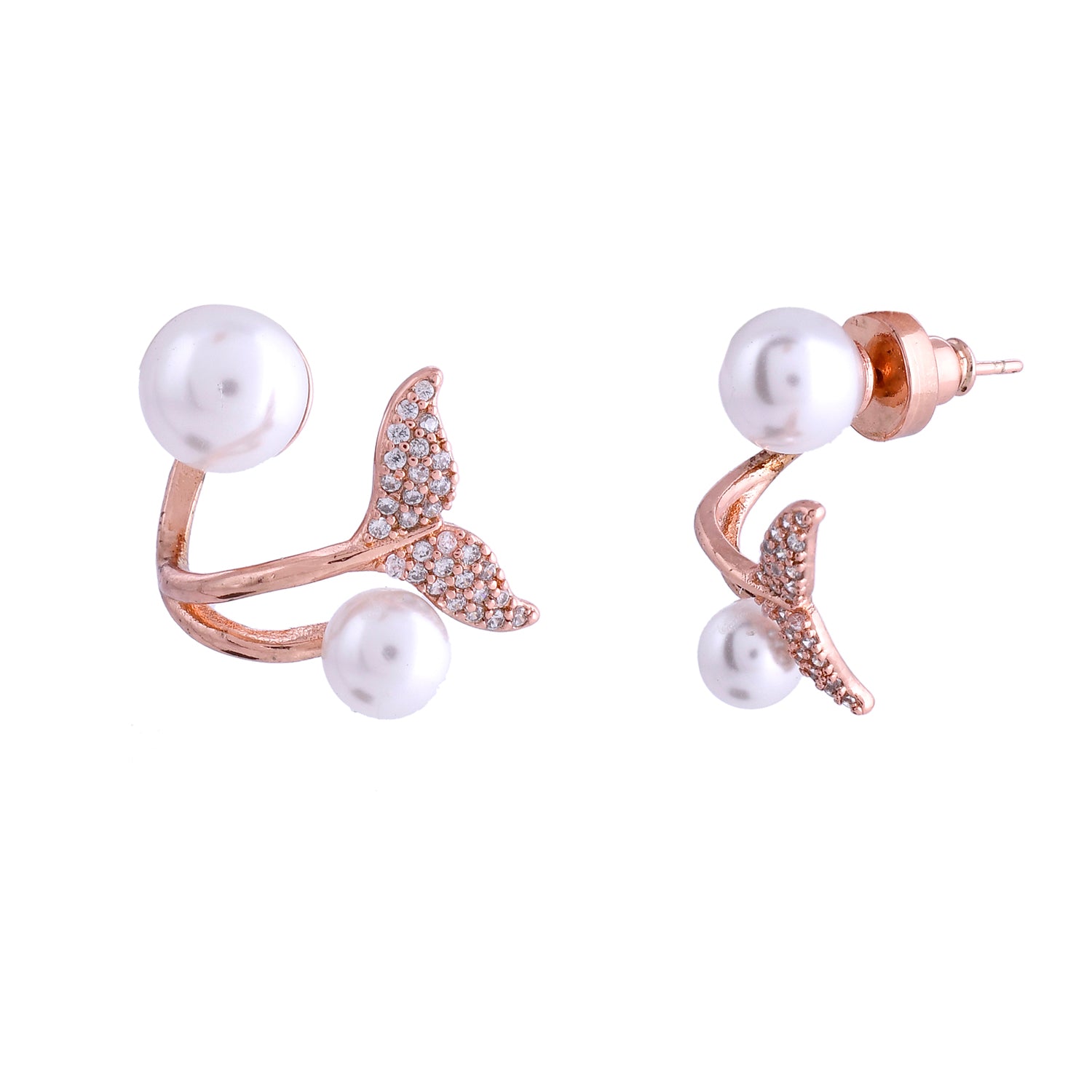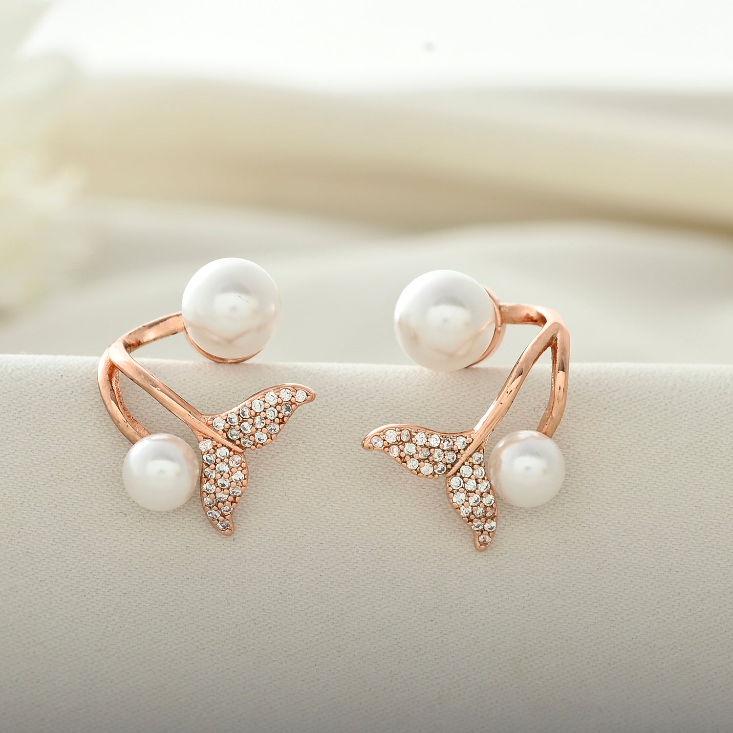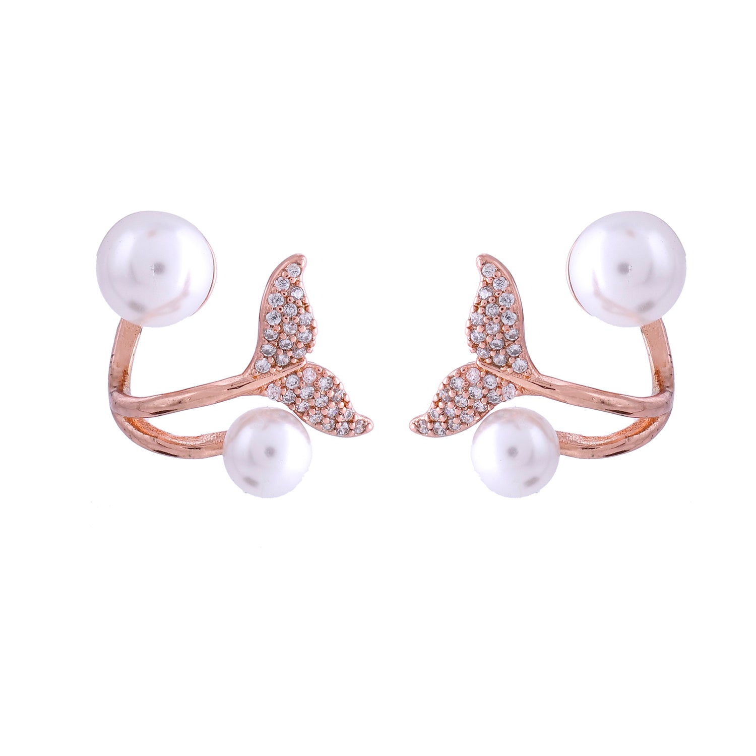 Introducing the Blooming Pearl Stud Earrings from the Sparkling Elegance collection. These earrings are a beautiful blend of elegance and sophistication, designed to add a touch of glamour to any outfit. Crafted with high-quality stainless steel and plated with luxurious rose gold, they feature a delicate floral design adorned with lustrous pearls and sparkling crystals. The warm gold tone combined with the white pearls and shimmering crystals creates a timeless and versatile piece perfect for any occasion. Ideal for gifting, these earrings make a thoughtful present for loved ones on special occasions such as Valentine's Day, Christmas, Diwali, Rakshabandhan, and more. Whether you're dressing up for a wedding, cocktail party, or looking for the perfect everyday accessory, the Blooming Pearl Stud Earrings are sure to make a chic statement. Embrace the contemporary yet classic style, and enjoy the fine craftsmanship and exquisite design that these earrings offer.