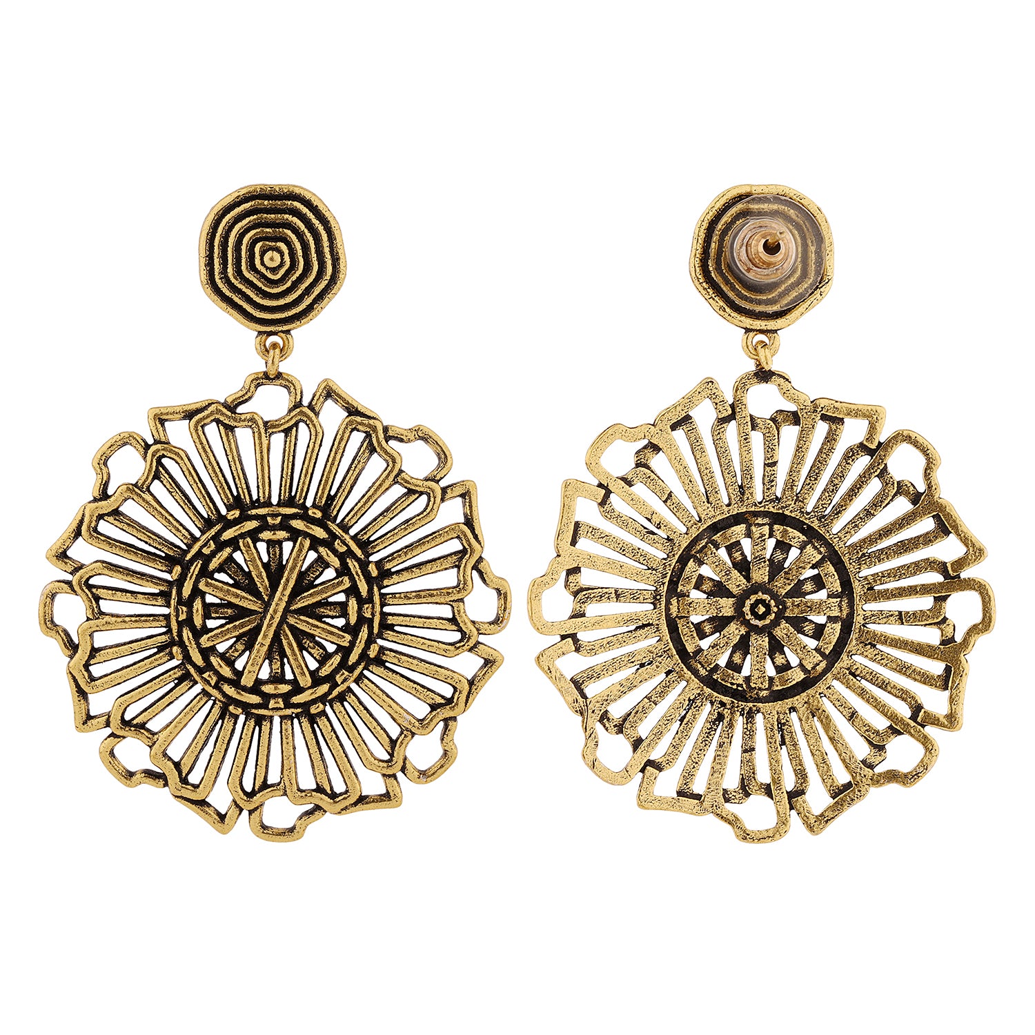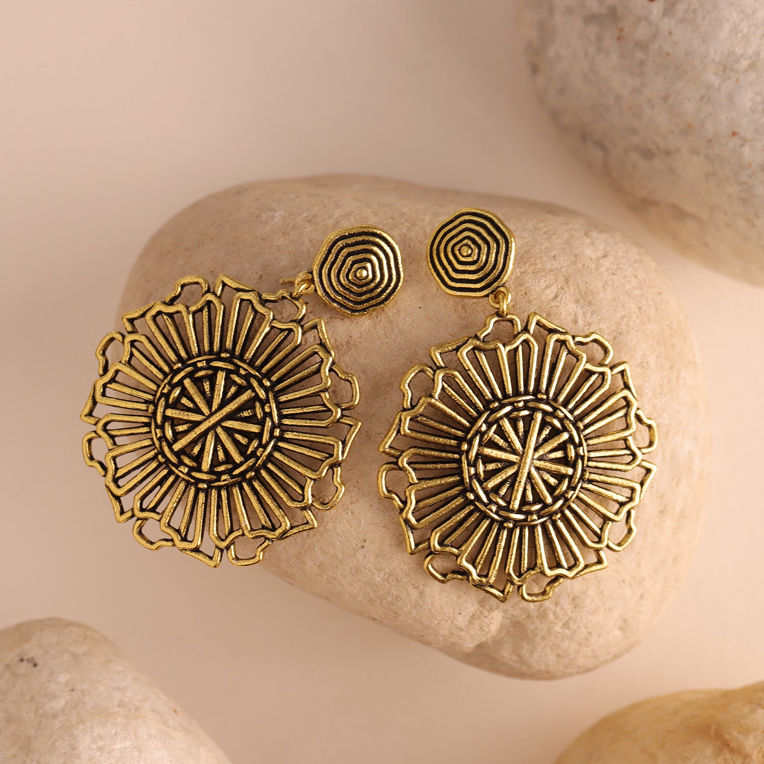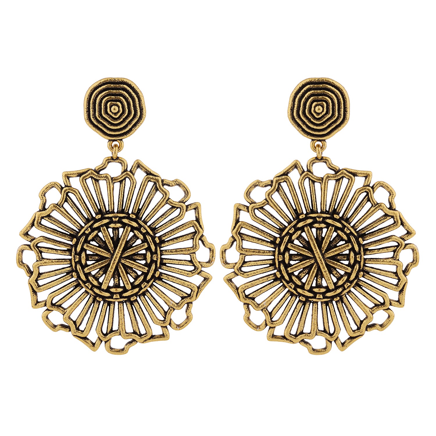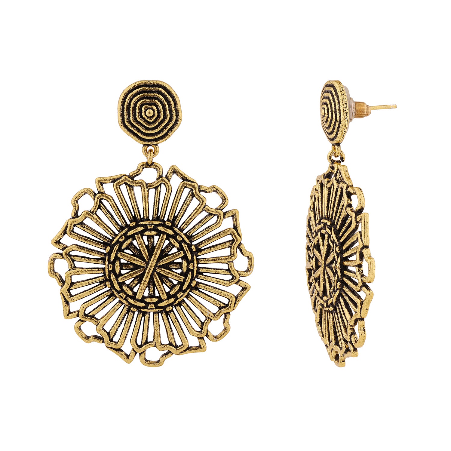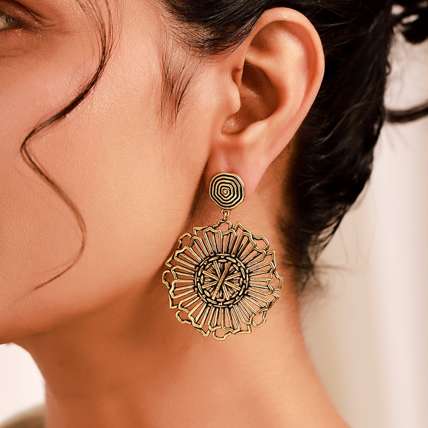 Introducing the Woven Wonder Coiling Dangler Earrings, a stunning piece from the Woven Wonder collection. These earrings are meticulously crafted from high-quality brass and feature a beautiful gold oxidized plating, giving them a chic and timeless appeal. The intricate design draws inspiration from traditional basket weaving, showcasing a detailed coiling pattern that exudes elegance and sophistication. Perfect for any occasion, these boho-style earrings are versatile enough for everyday wear, vacation outings, or even office jewelry. The warm gold hue complements a variety of outfits, making them an ideal accessory for both casual and formal looks. These statement earrings also make a thoughtful gift for women, whether for Valentine's Day, Diwali, Rakshabandhan, Christmas, or any special occasion. Delight your loved ones with these exquisite earrings that celebrate the artistry of handcrafted jewelry.