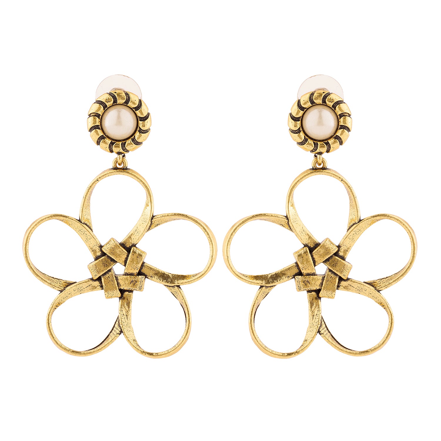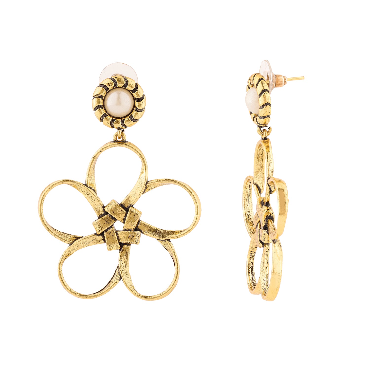 Woven Wonders Flat Twisted Floral Dangler Earrings