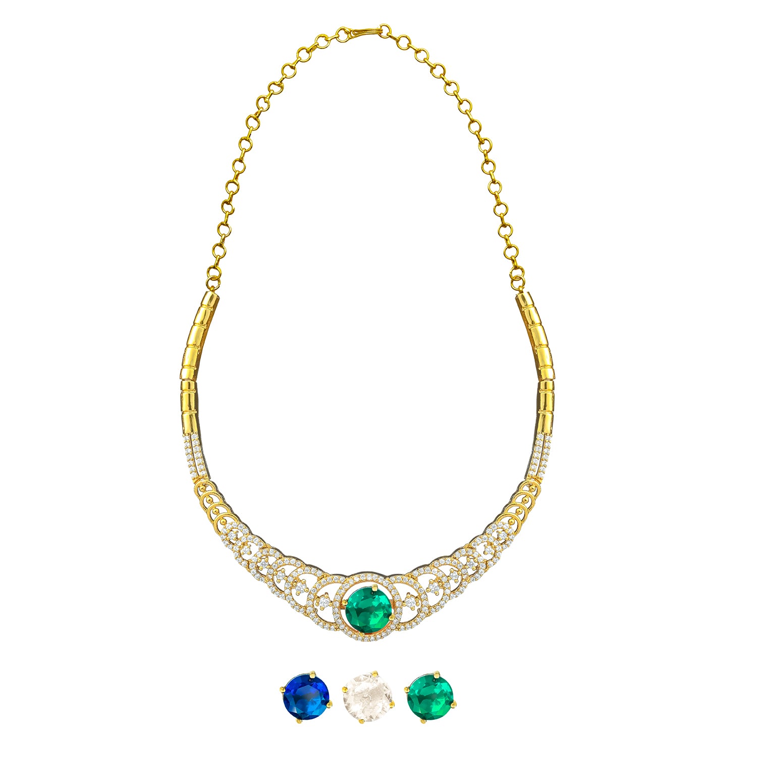 Gold Elegance Navaratna Glow Interchangeable Stone Necklace Set