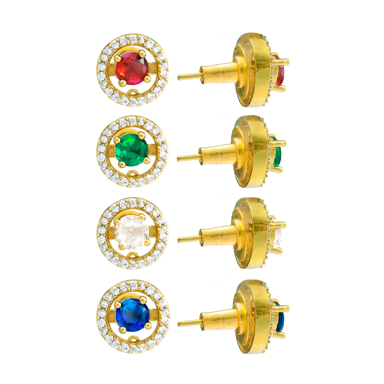 Experience versatility and beauty with the Gold Elegance Navaratna Glow Interchangeable Stone Necklace Set, a stunning women necklace set designed for those who love both tradition and creativity. Part of our luxurious Gold Elegance Collection, this jewellery set features a beautifully crafted choker-style necklace with sparkling CZ (American Diamond) detailing and interchangeable color stones for the center pendant and matching earrings, allowing you to style a new look every time. The set includes elegant center stones in classic shades of green, red, blue, gold, and clear CZ, giving you the freedom to match your jewellery with different sarees, lehengas, festive outfits, and wedding ensembles. Crafted using premium brass and coated with rich yellow gold plating, this ethnic traditional necklace set offers shine, durability, and comfort, making it ideal for weddings, festive celebrations, pooja ceremonies, and temple visits. Perfect for brides, bridesmaids, and women who love South Indian–inspired jewellery, this versatile piece also makes a thoughtful gift for women, whether for your wife, lover, mother, sister, or someone special. With proper care, your jewellery will stay radiant and beautiful for years.
