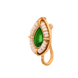Step into elegance with the Enchanting Ruby Teardrop Gold-Plated Brass Nose Pin. This exquisite piece blends traditional charm and contemporary design to create a stunning accessory that will turn heads at any occasion. Crafted from high-quality brass, this nose pin features luxurious gold plating and a captivating teardrop-shaped ruby at its center. Encircled by delicate white beads, the ruby adds a touch of sophistication and grace.Perfect for festive occasions, weddings, or as a thoughtful gift for your loved ones, this nose pin is a versatile accessory that complements any outfit. Whether you're celebrating Holi, Diwali, Rakshabandhan, or looking for the perfect Valentine's Day gift, this exquisite nose pin is sure to make a lasting impression. Ideal for women of all ages, it makes a wonderful gift for sisters, girlfriends, wives, mothers, and friends.