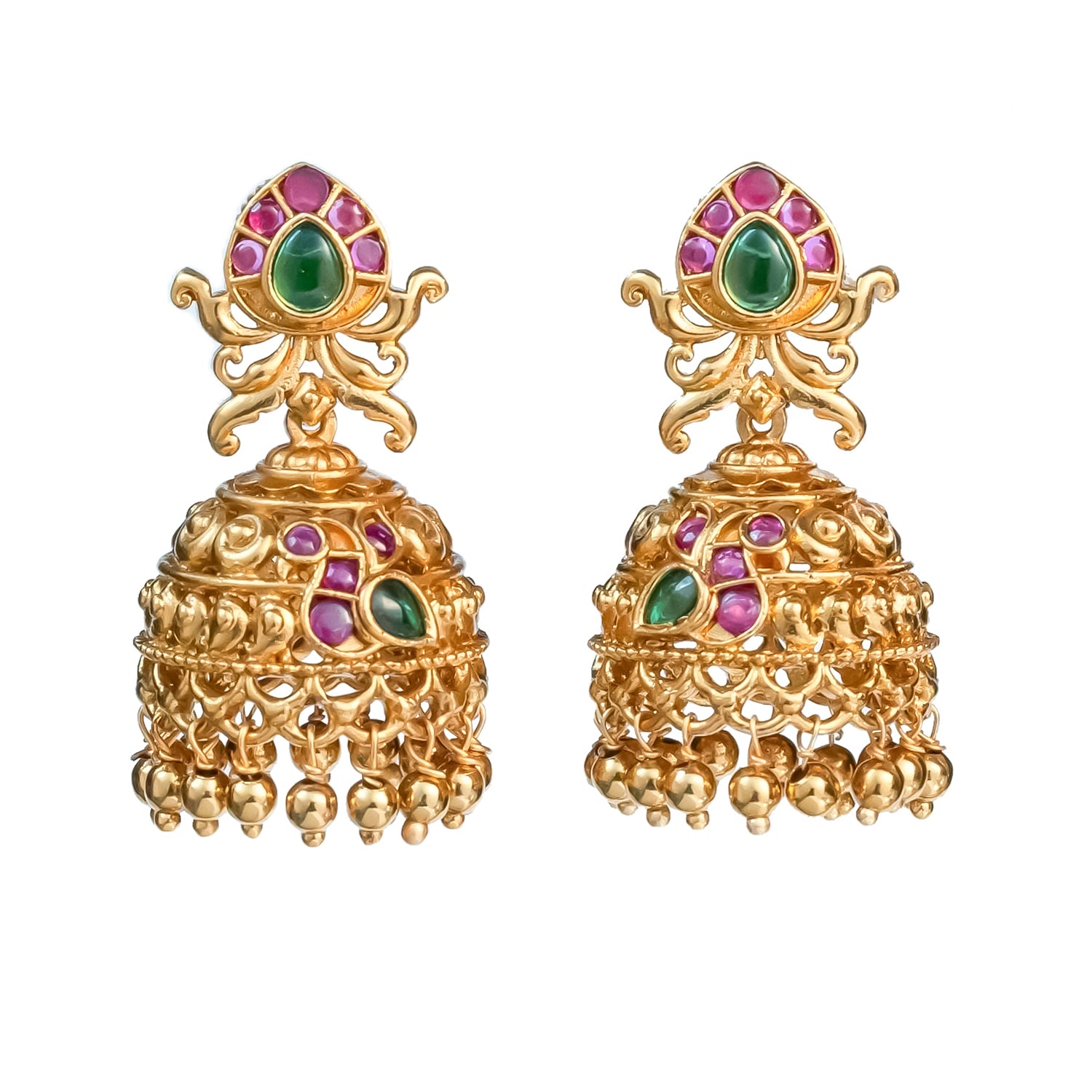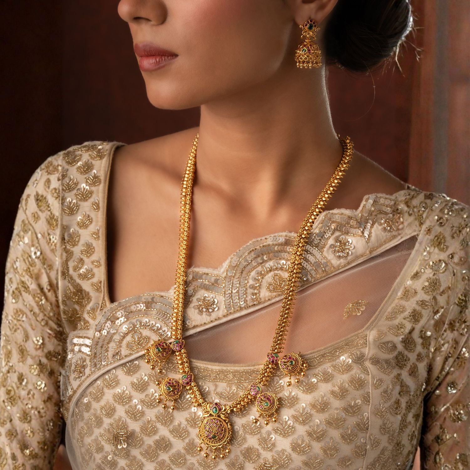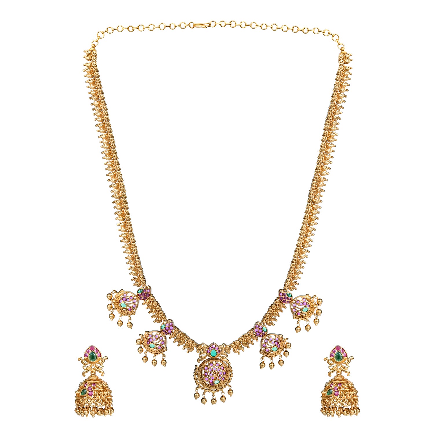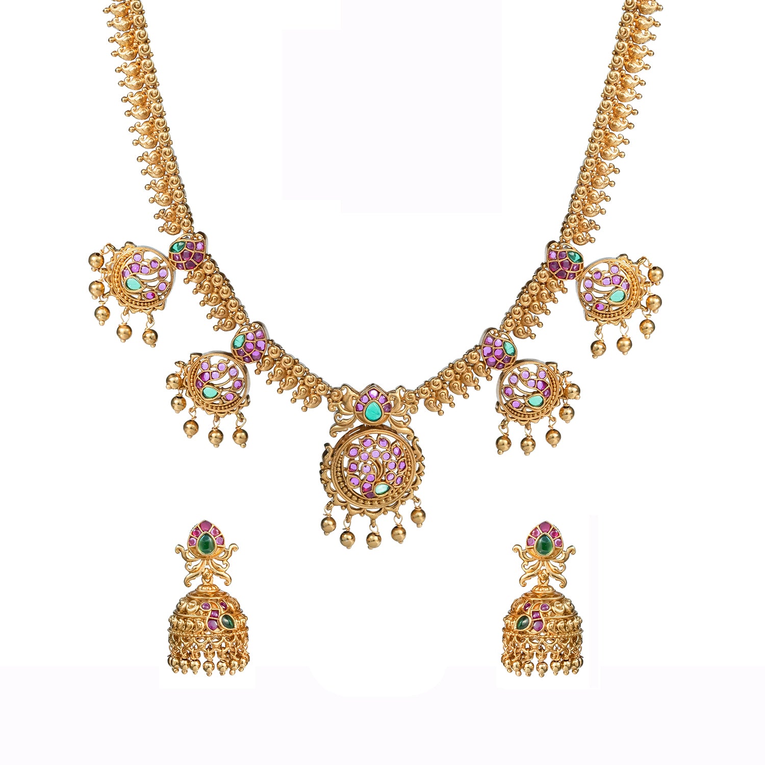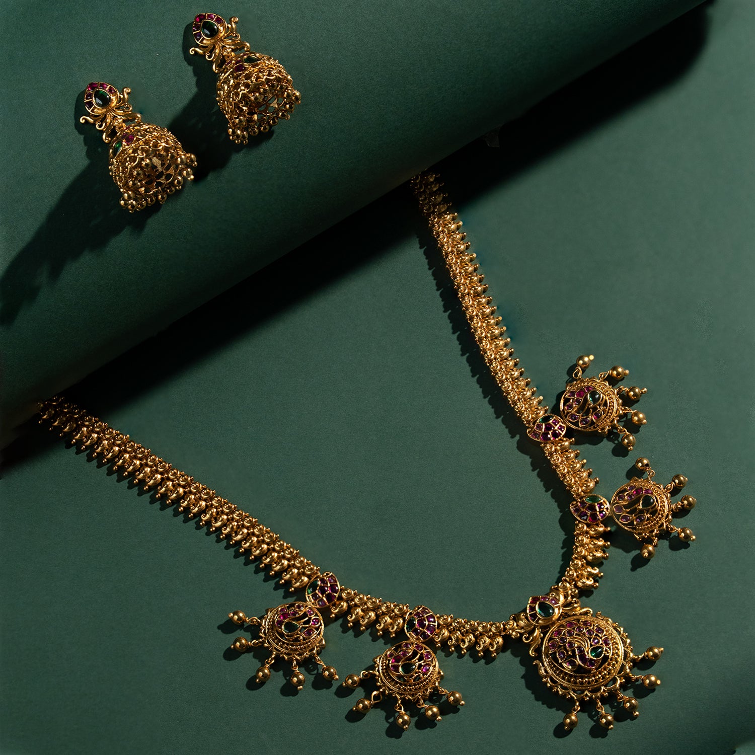 Gold Opulence Nandini Temple Jhumka Necklace Set