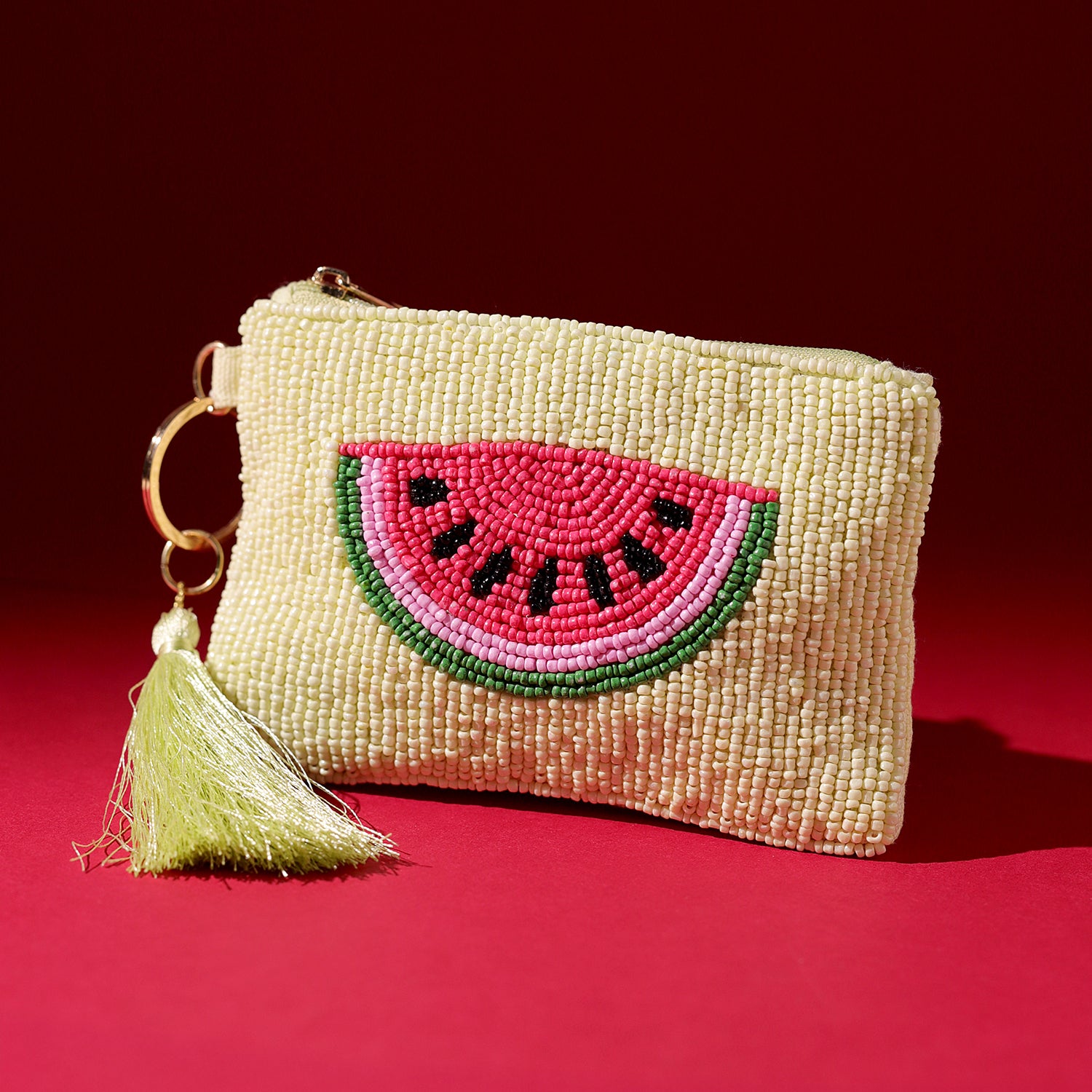 Fresh, fun, and full of personality, the Sweet Slice Watermelon Beaded Coin Bag from our Trendy Bags Collection is here to add a juicy pop of color to your everyday style! Handcrafted with love from premium fabric and beads, this adorable stylish coin wallet features a charming watermelon design that instantly lifts your mood. Each bead is carefully hand-applied to create a vibrant pattern of red, pink, and green tones that mimic a real watermelon slice, complete with black seed accents. A soft golden tassel adds a touch of sparkle, making it a perfect blend of playfulness and sophistication. Compact yet roomy enough for your coins, cards, or tiny essentials, this beaded coin purse is a delightful little addition to your daily routine. Whether you tuck it into your tote or carry it solo, it’s the perfect way to add a fruity twist to your day. Looking for a cute and meaningful gift for her, This mini pouch is ideal for birthdays, festive surprises, or “just because” moments, a sweet way to share smiles and summer vibes all year long!