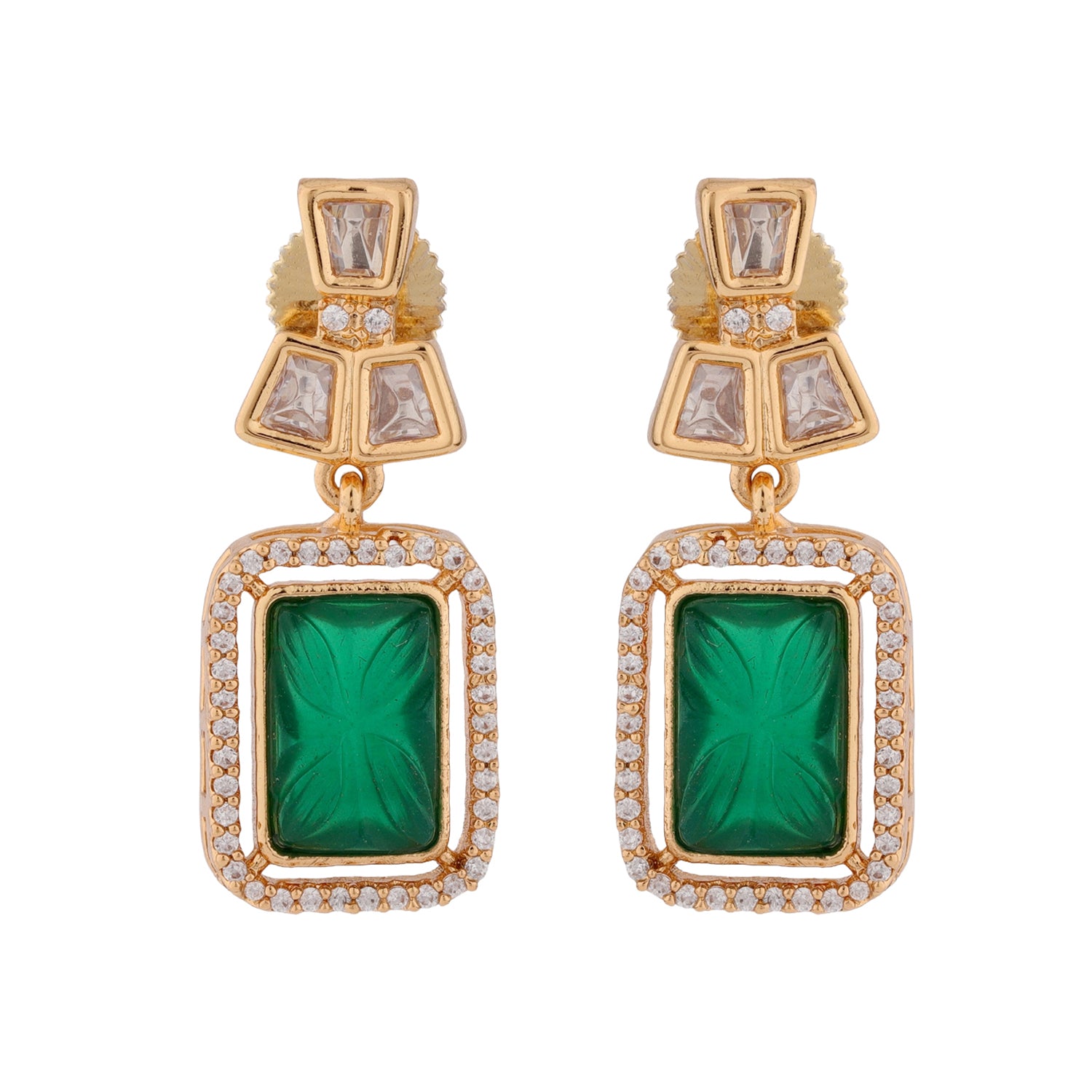 Step into a world of elegance with the Kundan Opulence Emerald Grace Necklace Set, a creation that blends timeless tradition with sophisticated modern design. Crafted from premium brass and finished with luxurious yellow gold plating, this Kundan Necklace Set for Women is the perfect statement piece for those who appreciate refined artistry and understated luxury. Each rectangular green stone is meticulously carved with intricate detailing and bordered by radiant kundan accents, symbolizing growth, grace, and prosperity. The brilliant combination of emerald green and gold gives this Women’s Necklace Set a regal yet contemporary feel, ideal for weddings, festive occasions, and elegant evening affairs. This Designer Necklace Set is versatile enough to elevate both traditional attire and modern silhouettes, from richly embroidered sarees and lehengas to sleek gowns and cocktail dresses. Whether you’re attending a grand celebration or gifting someone special, this Stylish Necklace Set is a timeless treasure that captures the essence of luxury and love.