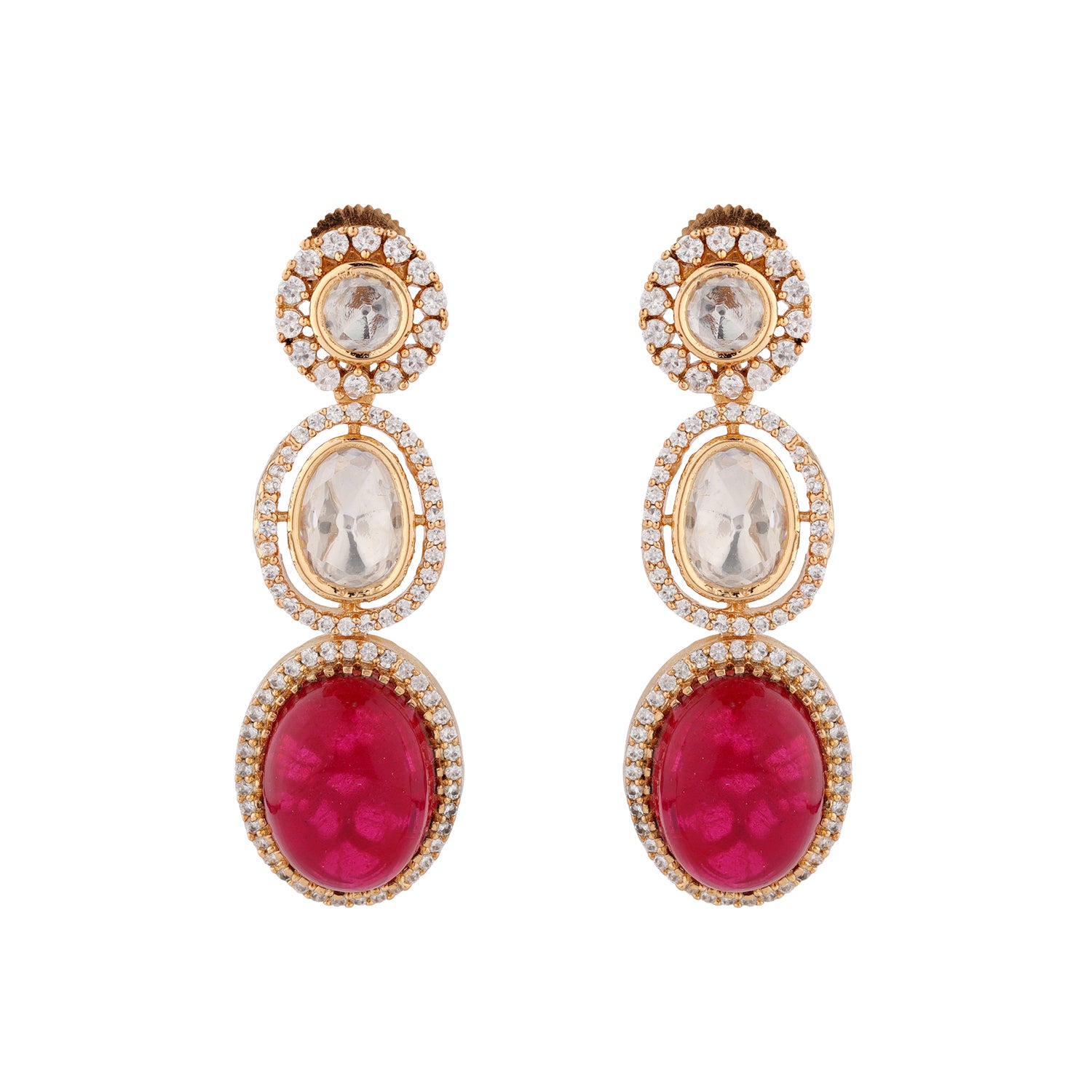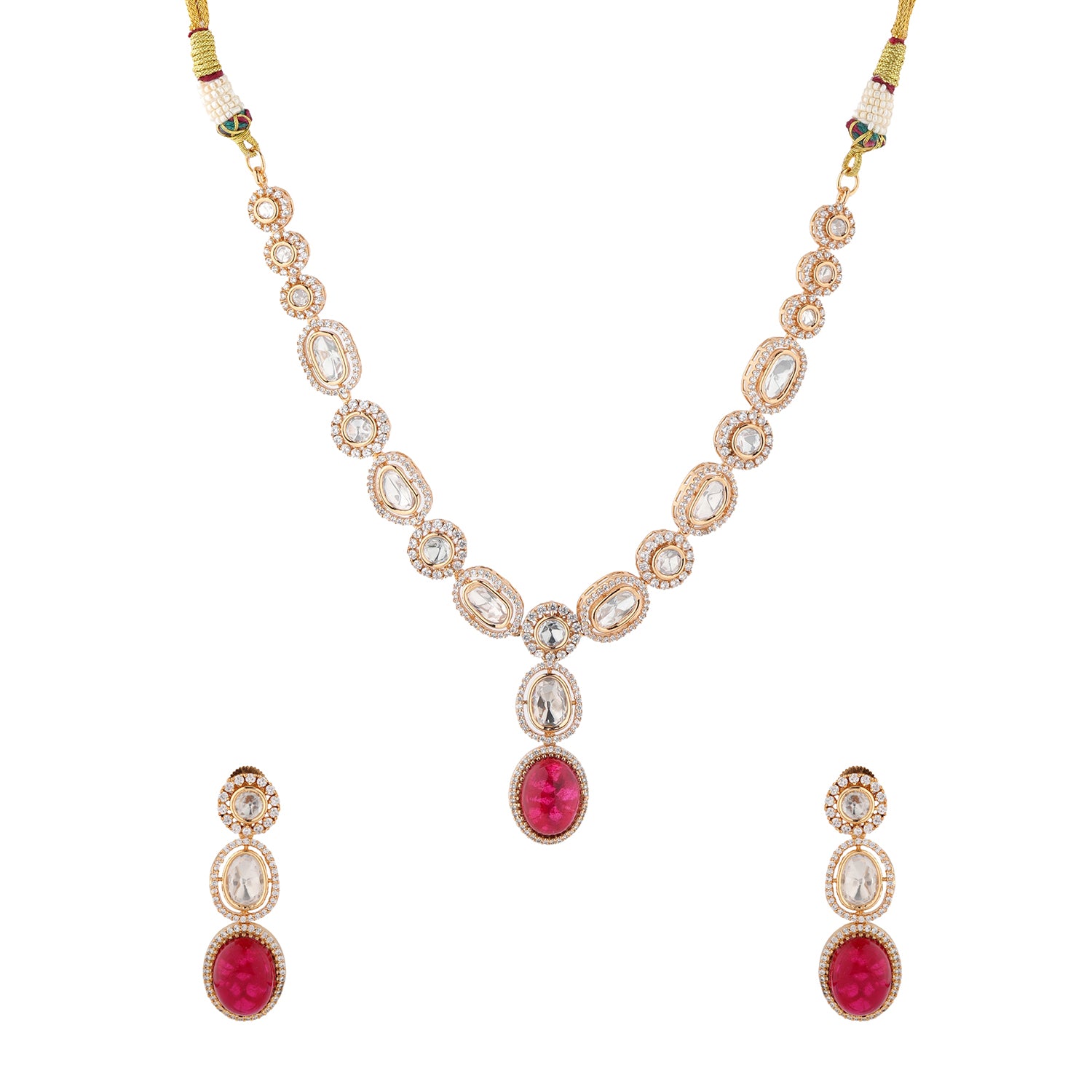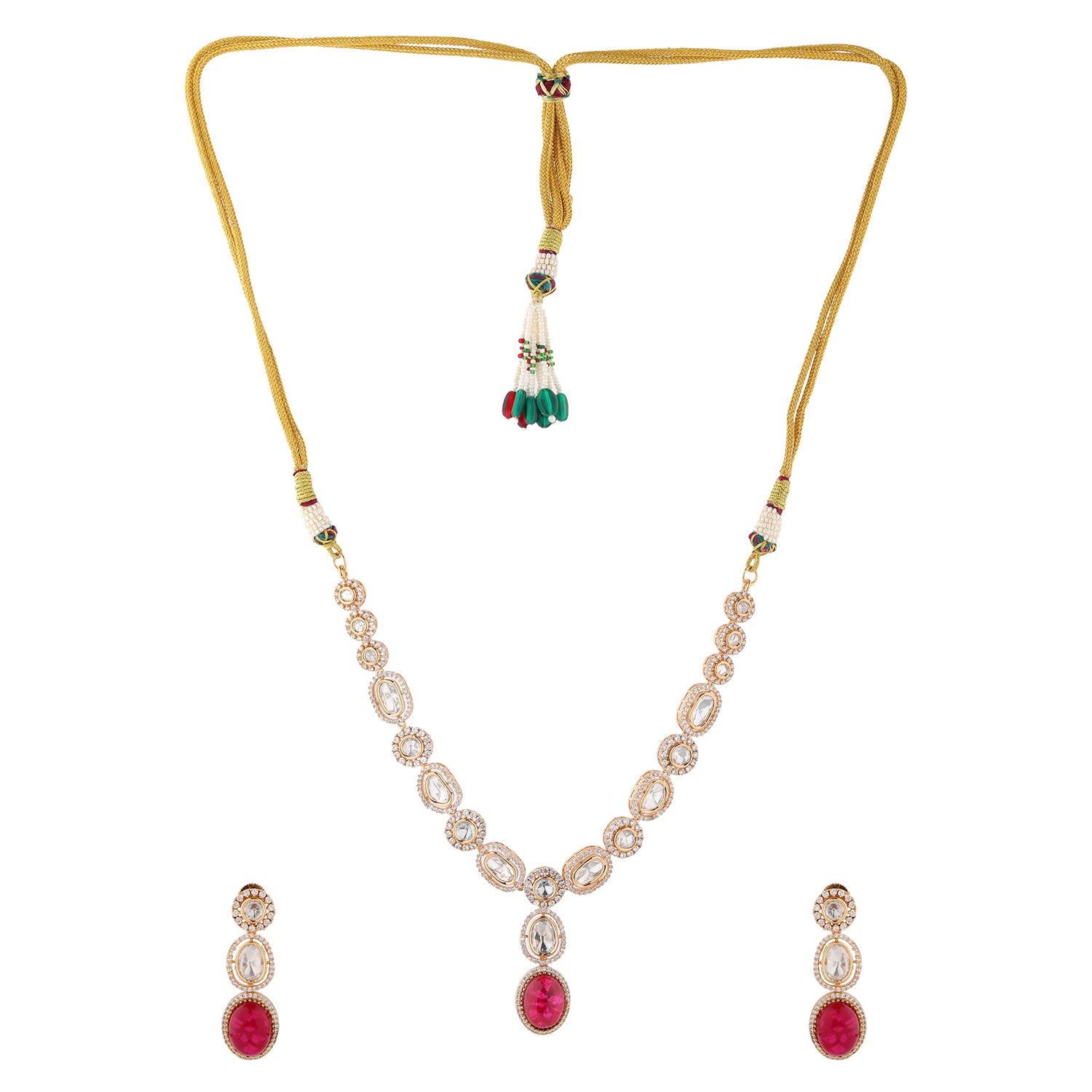 Radiate royal charm with the Kundan Opulence Royal Ruby Necklace Set, a piece that captures the soul of Indian heritage and the grace of modern style. The necklace is beautifully made from premium brass and finished with yellow gold plating, giving it a warm, radiant glow. Adorned with brilliant kundan stones and striking ruby-red accents, every detail reflects sophistication and care. The vibrant red and gold hues come together to create a look that’s both regal and romantic. It complements everything from heavy sarees and lehengas to elegant gowns and fusion outfits. Whether you’re the bride, a bridesmaid, or the star of a festive gather Radiate royal charm with this set, a piece that captures the soul of Indian heritage and the grace of modern style. And if you’re searching for the perfect gift for wife, girlfriend, or special woman, this one speaks the language of love and elegance in every sparkle.