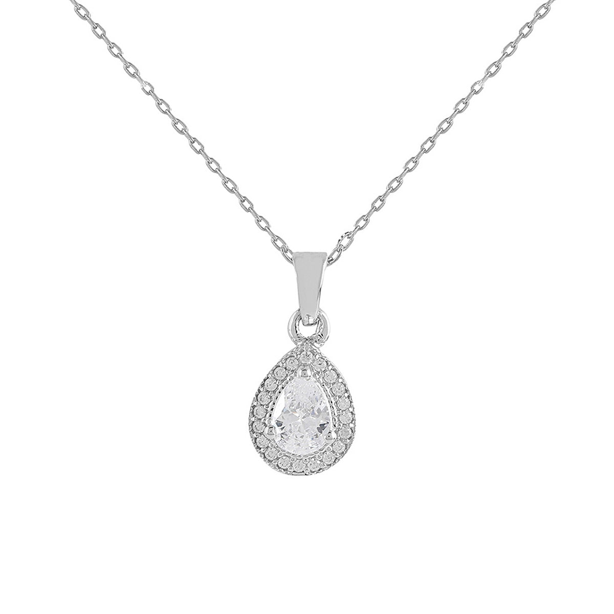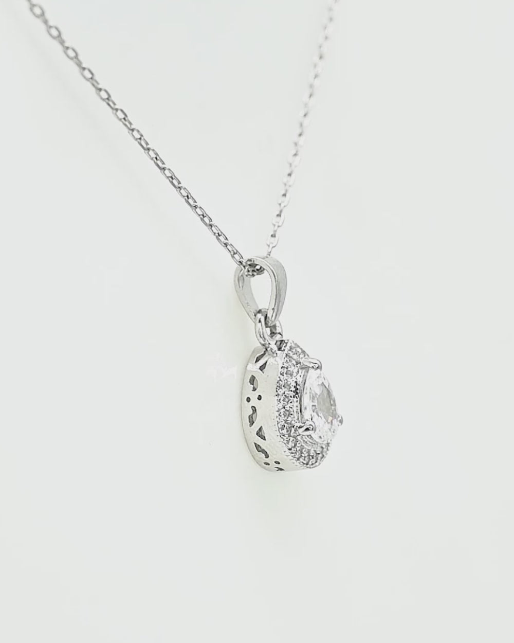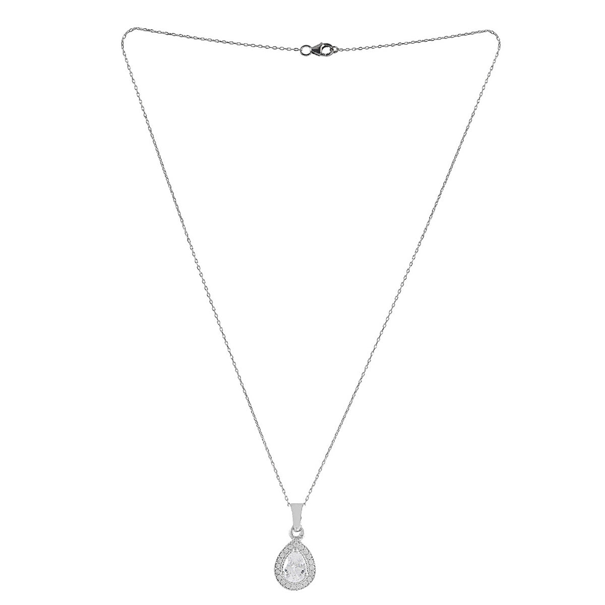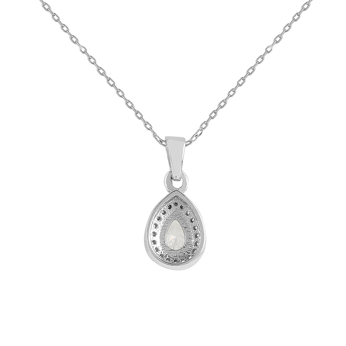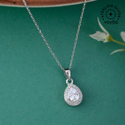 925 Sterling Silver CZ White Stone shaped Pendant with Chain