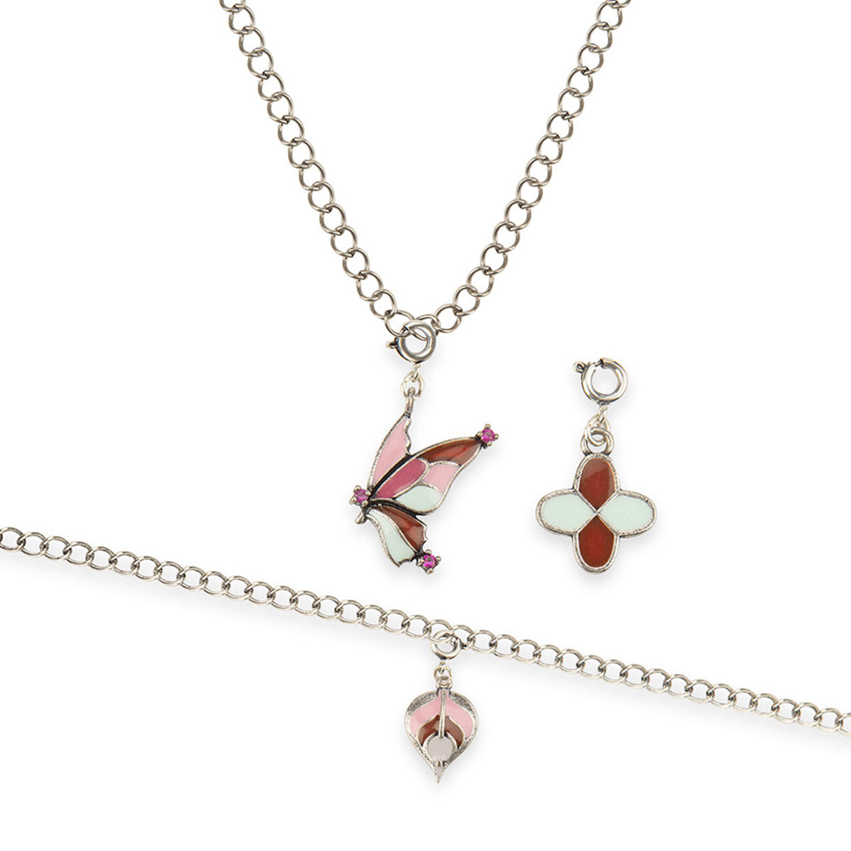If you want to go for a more modern, simple, yet very trendy and fashionable necklace make sure to decorate your neck with this pink shaded enameled charm pendant. This piece is made out of brass, with a dual tone...