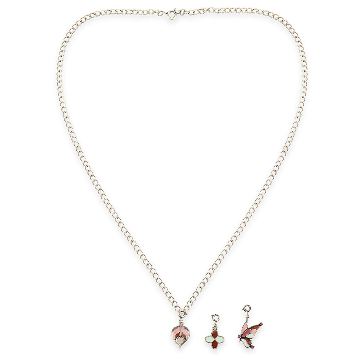 If you are planning to go to a special evening or some sort of celebration then make sure to check out this lovely and stylish pendant. This elegant piece is made out of brass and features enameled charms of butterfly and leaf. It has been finished in dual plating for a lustrous and rich look. Plus, you can wear it as a face mask holder chain or with cool glasses which will top off the look in a very stylish and noticeable way.