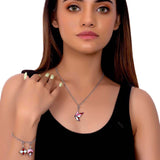 Celebrate your mom's special day with this stunning pendant set from our Mother's Day Collection. This set features a beautiful pendant and matching earrings, both studded with vibrant green and yellow emerald-shaped CZ stones. The pendant hangs elegantly from a...