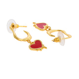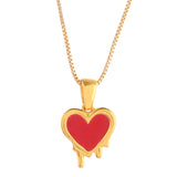 Yellow gold plated pendant set with red enamelled hearts. Made from brass. Pair with casual V Day looks.