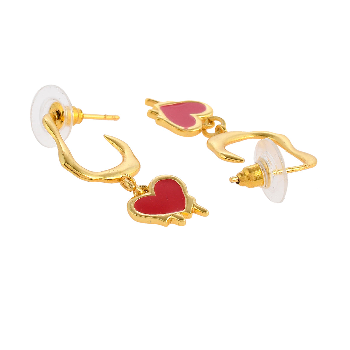 Contemporary design pendant set, featuring cutwork design red enamel hearts. Fashioned out of brass and gold plated. Pair with formal and casual attire.Caring for your fashion jewelry: We, at Voylla, take care of every piece of jewelry so that you...