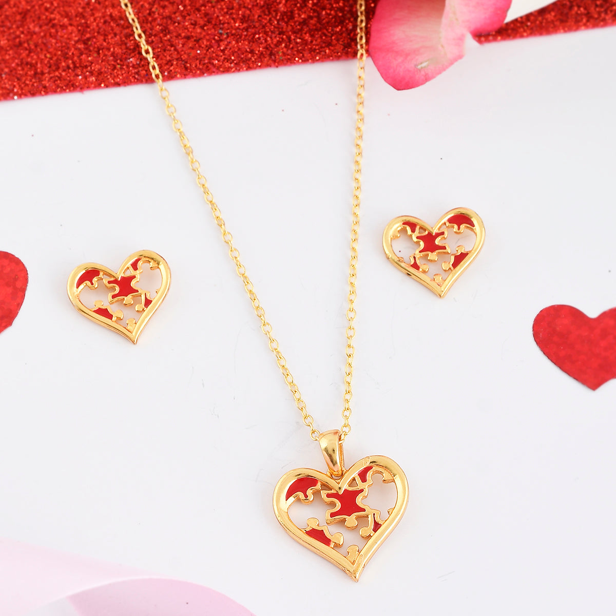 Jigsaw Heart Pendant Set