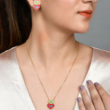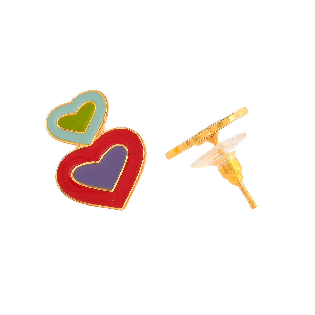 Playful layered hearts colourful pendant set. Enamelled and gold plated, the set has been crafted from brass. A good gifting option for loved ones.