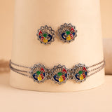 Boho Tribe Moon Phases Oxidised Choker Necklace Set