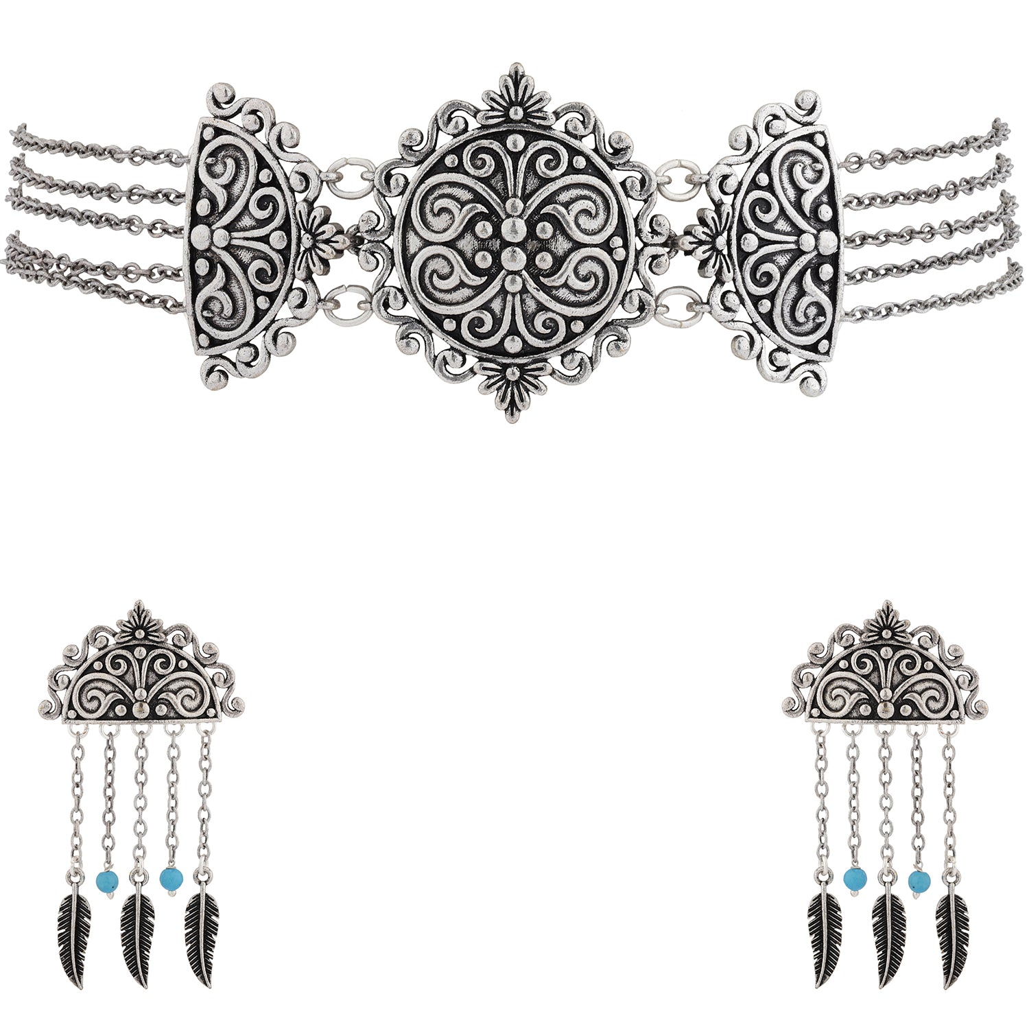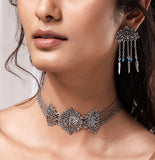 Boho Tribe Nomadic Oxidised Choker Necklace Set